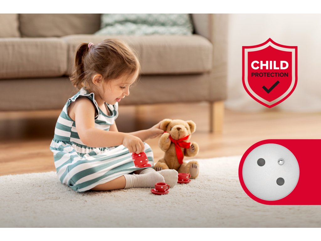 Električni podaljšek Rebel je opremljen z vgrajenimi zaščitnimi zaslonkami v mrežnih vtičnicah. Tako učinkovito skrbi za zdravje in življenje najmlajših ter jih ščiti pred vstavitvijo prstov ali drugih predmetov.