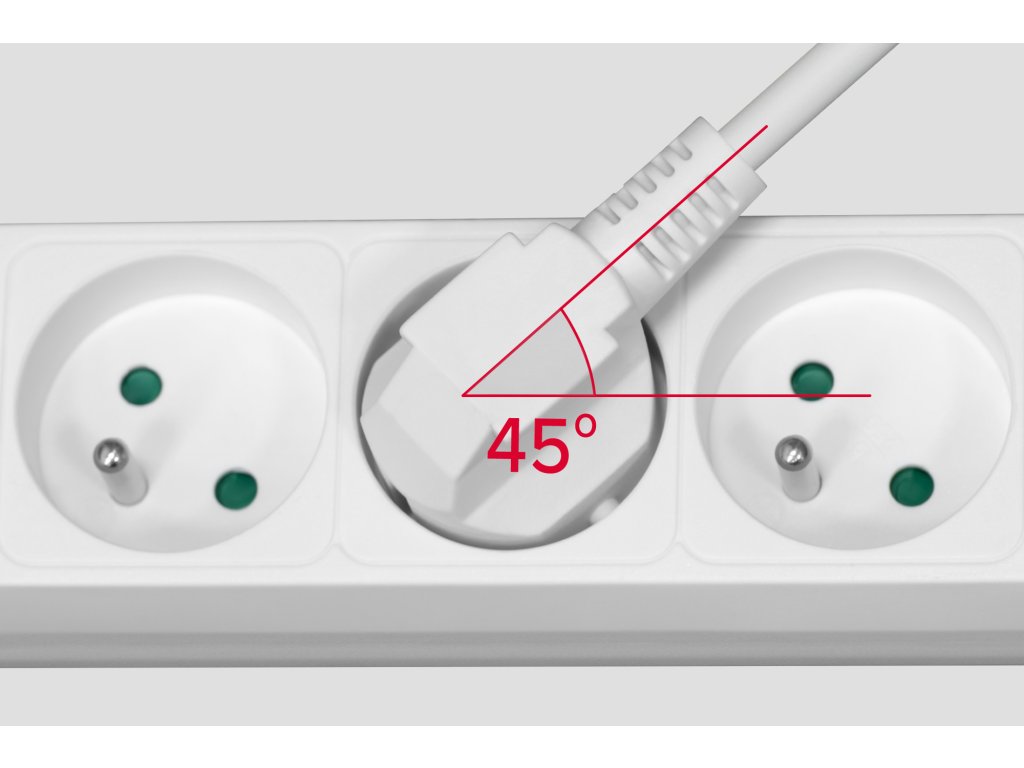 Želite priključiti tiskalnik, računalnik in druge naprave na podaljšek? Vtičnice pod kotom 45 stopinj v podaljšku Rebel omogočajo udobno priključitev do treh naprav hkrati.