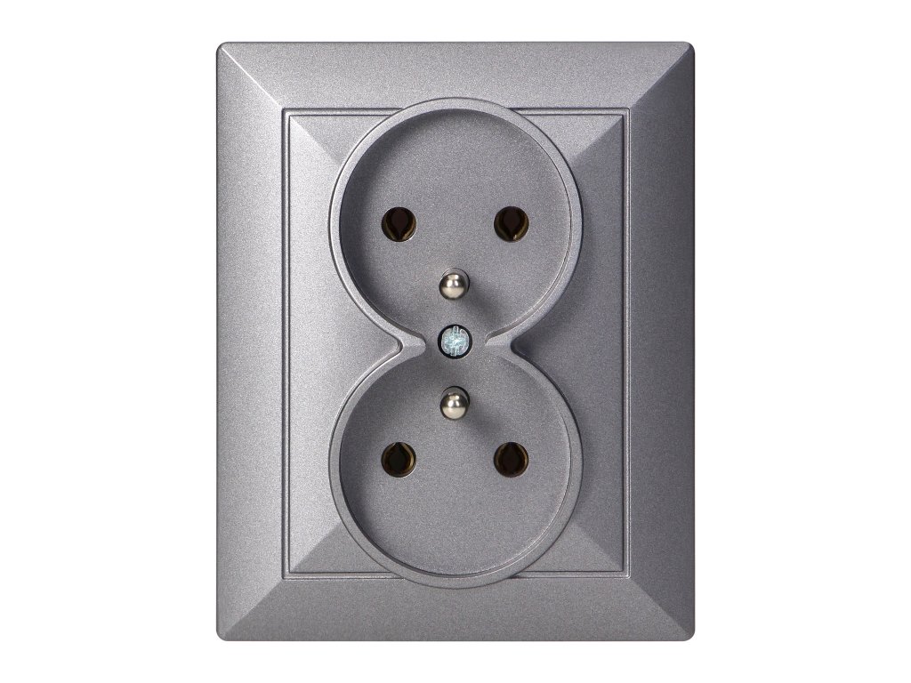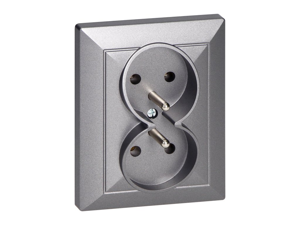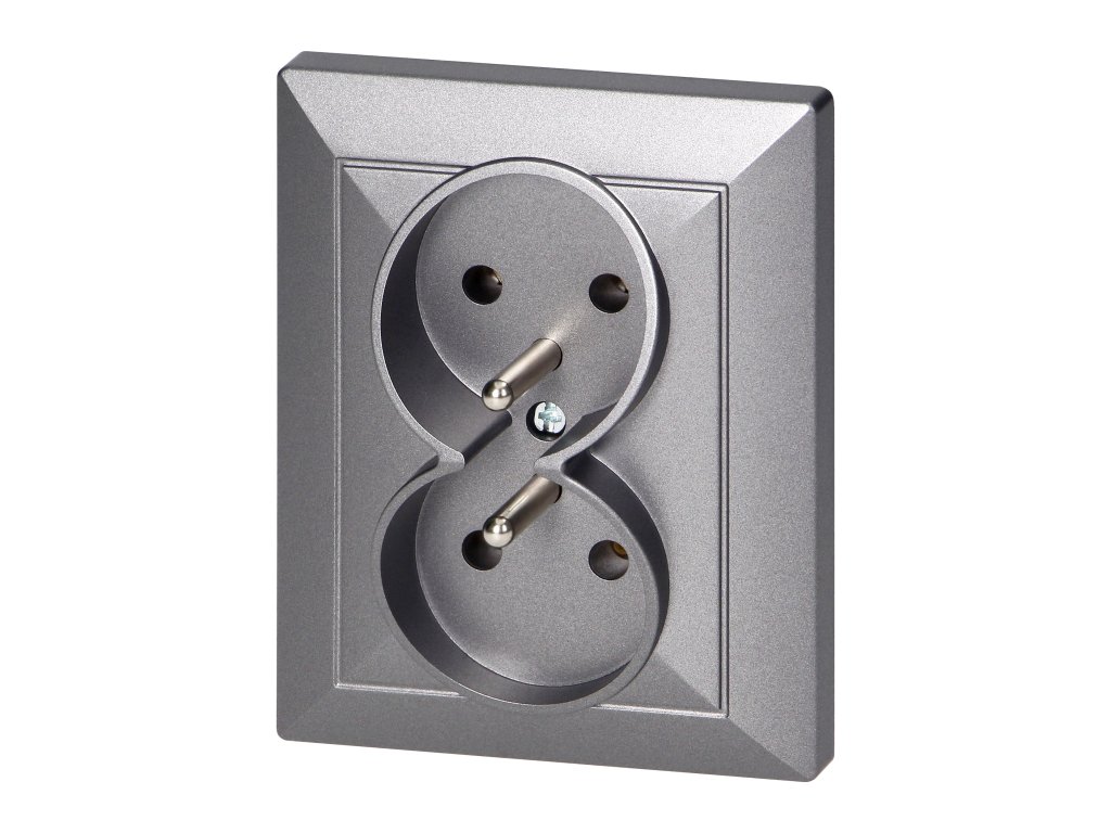 Modularna serija s simetričnim sistemom okvirne plošče (za 1-, 2-, 3-, 4-, 5-modulov), ki omogoča montažo izdelka v vodoravnem in navpičnem položaju. Sodoben sistem hitrega priklopa (žice so povezane z neposrednim pritiskom v ohišje) zagotavlja varno in varno namestitev ter odstranitev žic. Vtičnice so opremljene s tradicionalnimi vijačnimi priključki. Notranja zasnova terminalov zagotavlja varno povezavo žic od 0.75 mm? do 2.5 mm?. Močna in trpežna mreža montažne plošče in visokokakovostni elementi z možnostjo samodejnega vračanja omogočajo stabilno in varno namestitev v škatli. Posebni vzmetni elementi omogočajo prileganje okvirja v ohišje.Dvojna francoska vtičnica, 2x2P+E. Namenjena za vgradnjo v zidu. Uporablja se v notranjih prostorih (IP20).