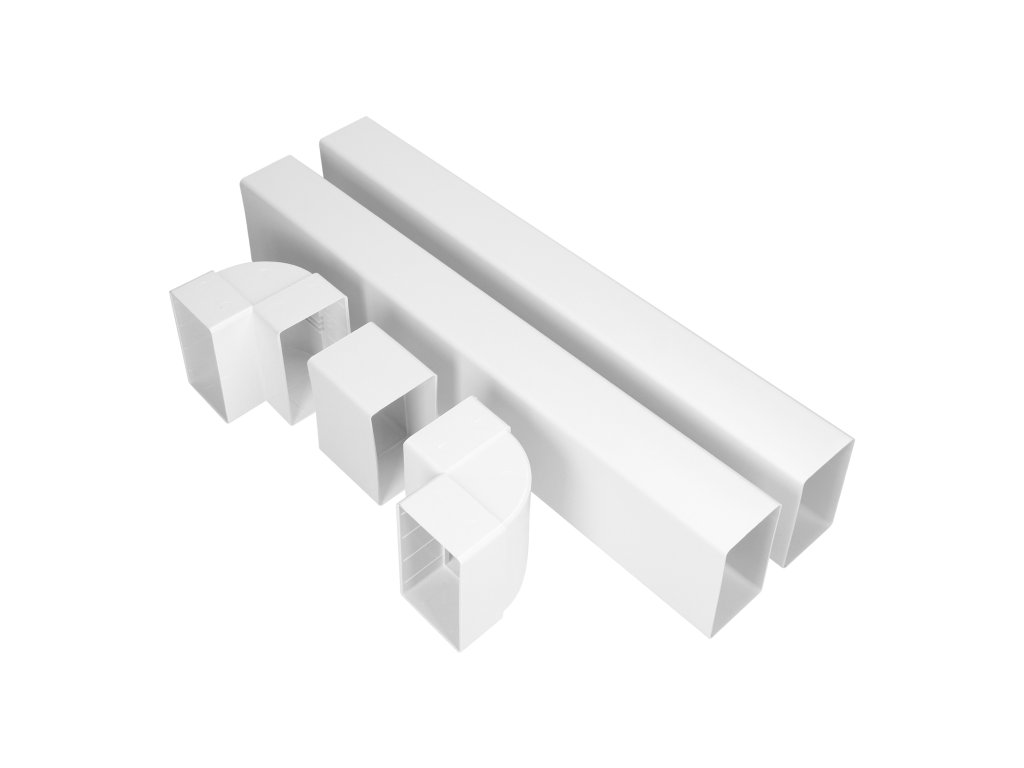 2x ploščat prezračevalni kanal. Dimenzije: 110x55 mm, dolžina kanala 0,5 m. Izdelan iz PVC.