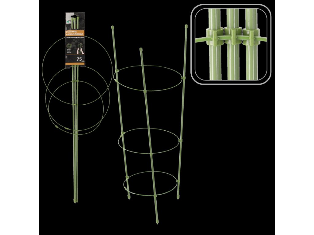 Krožna podpora s stebri je odlična izbira za lončnice in gredice. Zaradi trdne kovinske izvedbe, prevlečene s plastiko, je zelo odporna proti poškodbam in neugodnim vremenskim razmeram, ter zaradi zelene barve postane skoraj nevidna v ozadju rastlin. Uporabna je npr. pri gojenju borovnic, hortenzij. preprečuje "leženje" rastline in omogoča njeno harmonično rast. Krožna podpora je zanimiva alternativa različnim vrstam samostojnih palic. Zelena barva izdelka se popolnoma ujema z rastlinami, prav tako kot dekoracija vrtov. Podporo je treba namestiti v zemljo poleg rastline in privezati steblo, s čimer zagotovimo odlično stabilizacijo in zaščito pred lomljenjem tudi med vetrovnim vremenom.