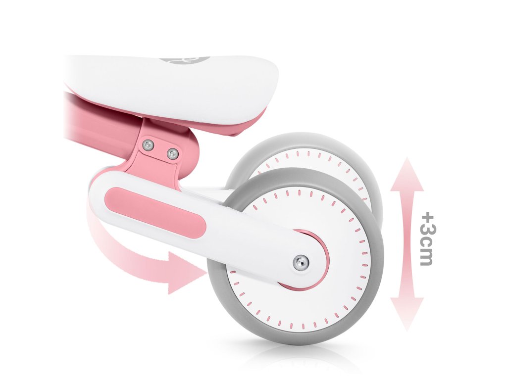 - Boljša prilagoditev: omogoča popolno prilagoditev višine sedeža trenutni višini otroka, kar izboljšuje udobje in olajša učenje ravnotežja.