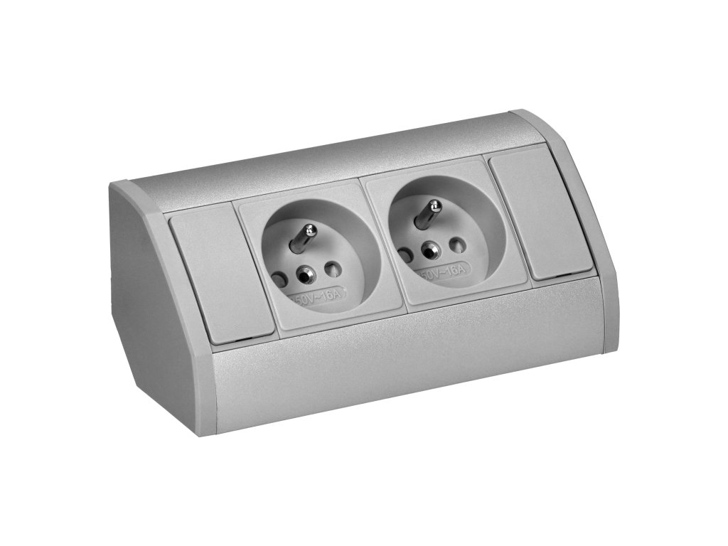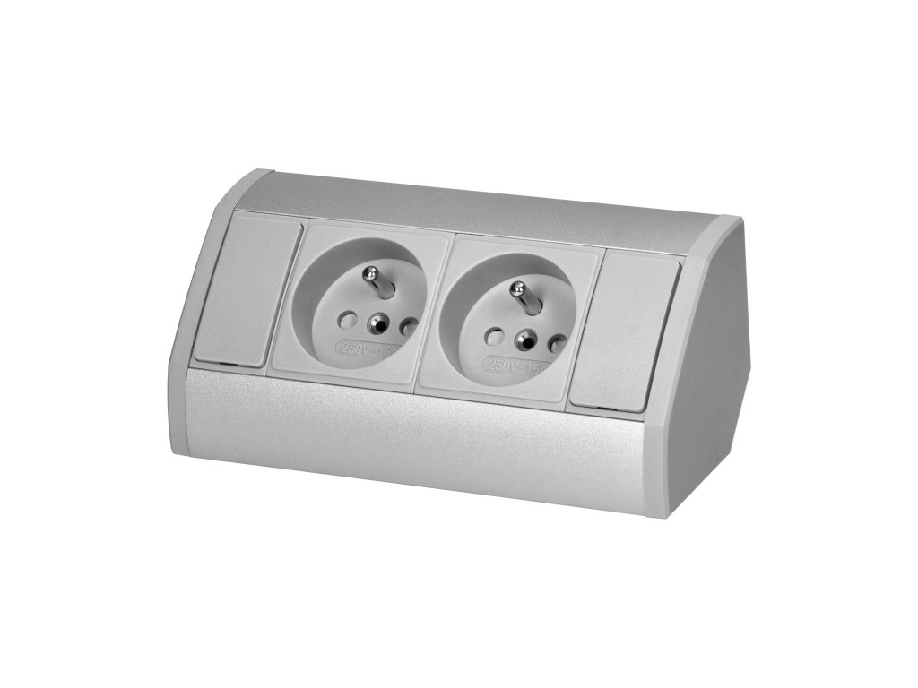 Pohištvena vtičnica 2x2P+E srebrna