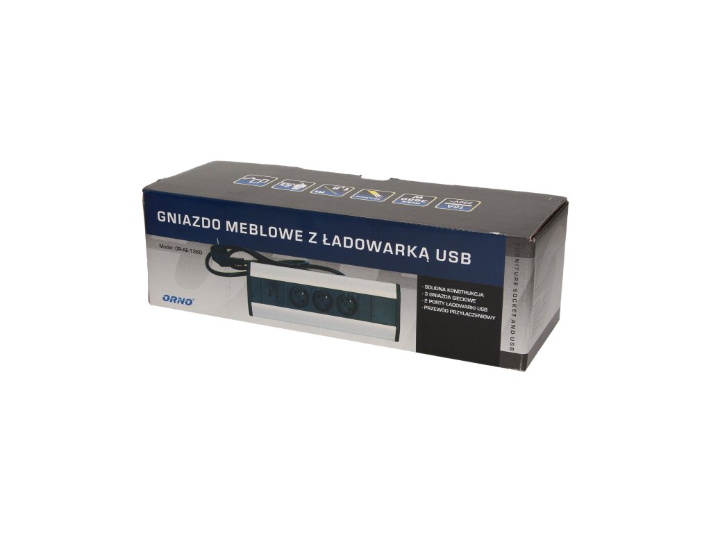 Pohištvena vtičnica z USB + 1,8 m kabel
