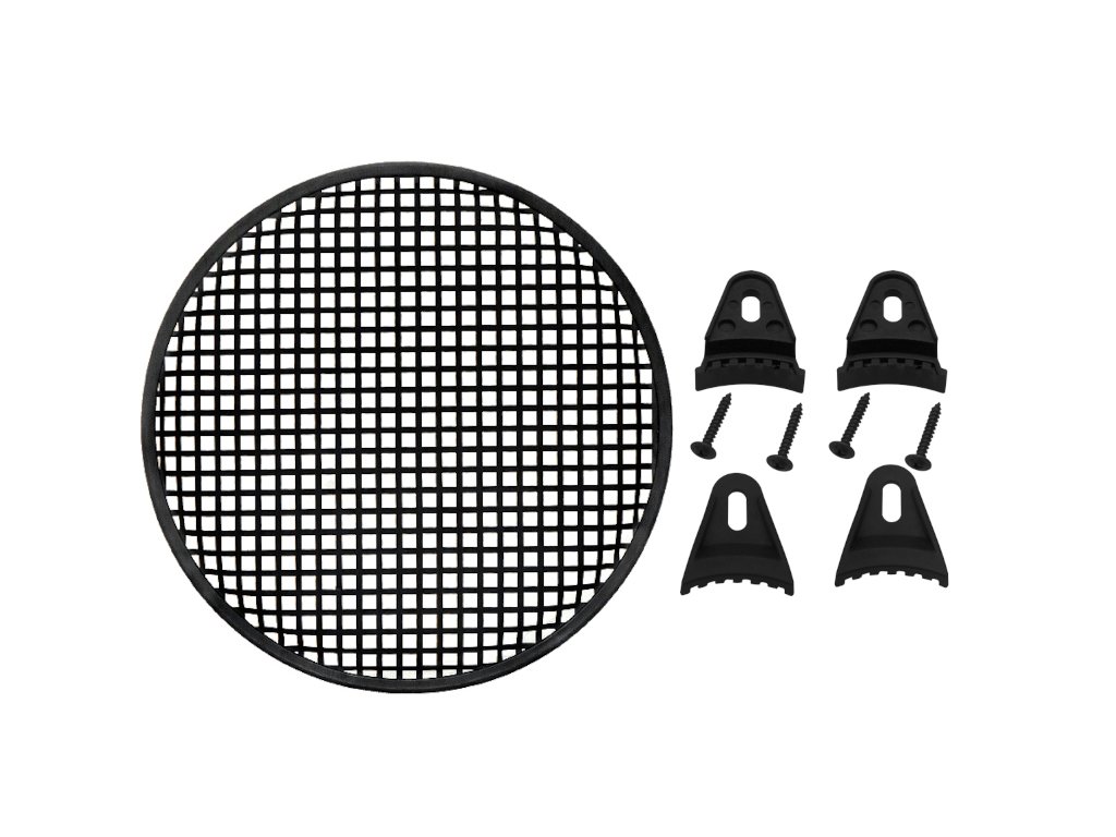 Rešetka zvočnika v črni barvi. Ta rešetka je idealna za zaščito zvočnikov na odrskih zvočnikih in nizkotonskih zvočnikih z premerom 38 cm pred poškodbami. Priloženi so nosilci za pritrditev rešetke na zvočnik.