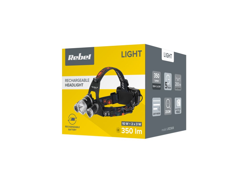 Moč: 10 W LED + 2x 3 W LED Strum svetlobe: 350 lm Doseg svetlobe: 200 m 4 načini osvetlitve: srednja LED, 2 x stranska LED, 3 x LED, stroboskop Baterija: 2 x 3,7 V 1500 mAh Tip baterije: 18650 Čas delovanja: do 5 ur Čas polnjenja: približno 8 ur Vtičnica za polnjenje: micro USB Material: ABS Dimenzije: 100 x 95 x 70 mm Teža: 142,9 g V kompletu: micro USB kabel (54 cm), navodila za uporaboMoč: 10 W LED + 2x 3 W LED