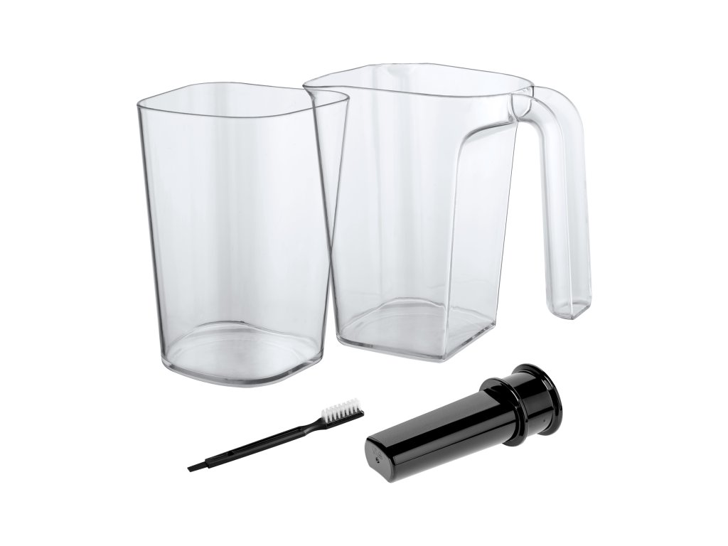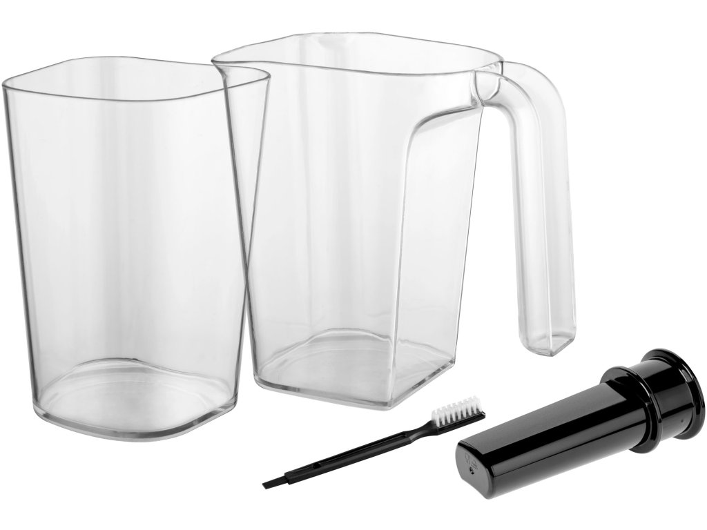 Z izbiro sokovnika s počasnim vrtenjem Teesa vam ni treba skrbeti za nakup dodatnih dodatkov. Skupaj z napravo sta v kompletu 2 posodi – 0,8-litrska za sok in 1-litrska za kašo, poleg tega potiskač za povečanje udobja uporabe in ščetka za lažje čiščenje.