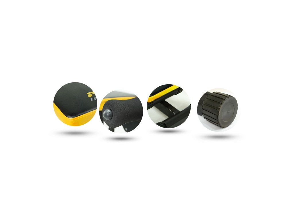 Stabilna kovinska konstrukcija zagotavlja varnost in maksimalno stabilnost pri uporabi klopi. Nastavljiva višina nog vam daje popolno svobodo pri prilagajanju naprave vašemu lastnemu stilu in vadbenemu programu. Zahvaljujoč mehanizmu hitrega zlaganja klop v zloženem stanju zavzame zelo malo prostora.