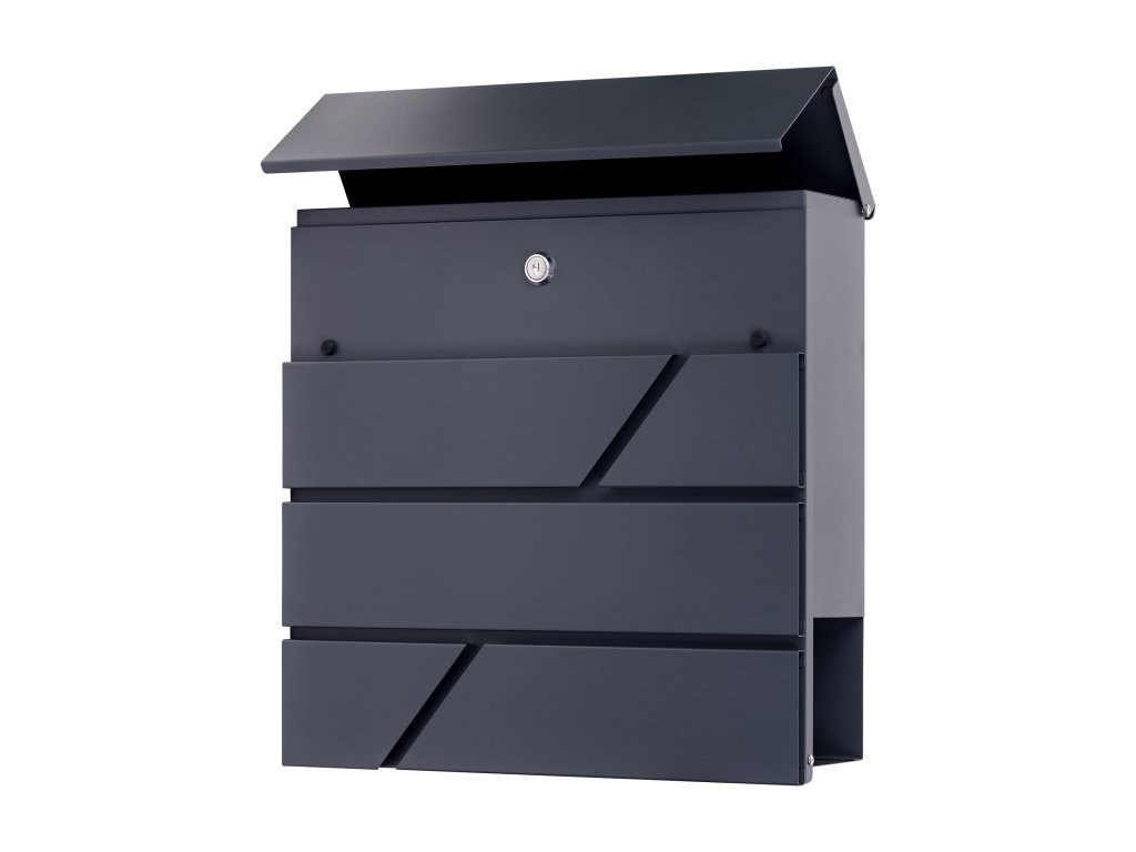 Antracitna poštni nabiralnik – model Palawan, je rešitev, ki vam bo pomagala učinkovito prejemati in shranjevati pošiljke, ko ni nikogar doma. Poštni nabiralnik iz pocinkane jeklene pločevine, nameščen na steni stavbe ali ograje, bo bistveno olajšal upravljanje prihajajoče pošte.Poštni nabiralnik Palawan je opremljen z držalom za časopise, da boste po eni strani enostavno dvignili naročnine in po drugi strani imeli letake in reklamne ponudbe pod nadzorom.