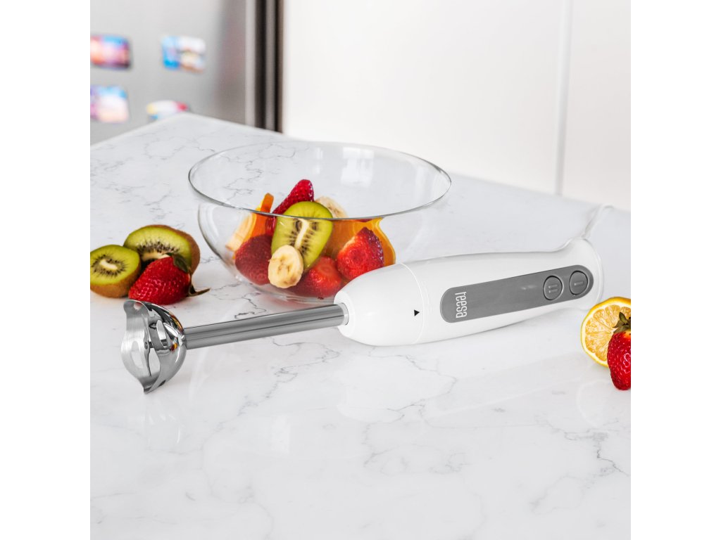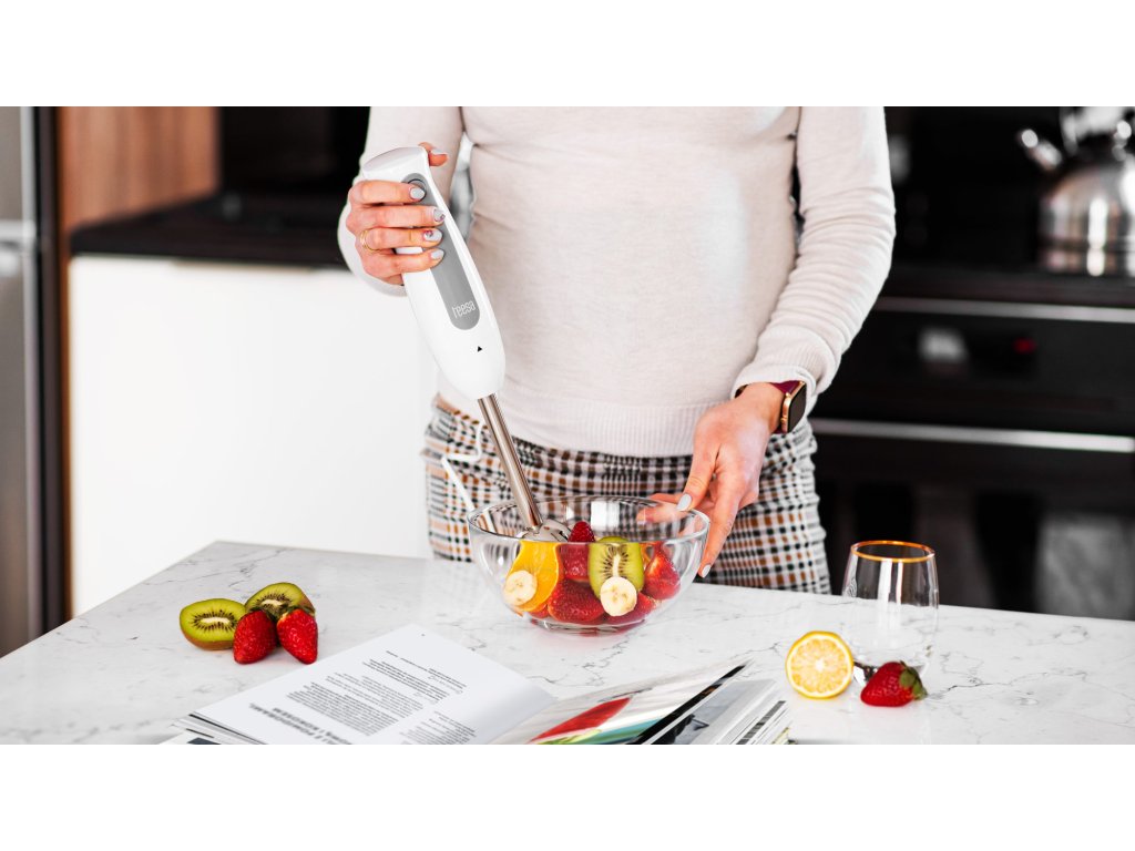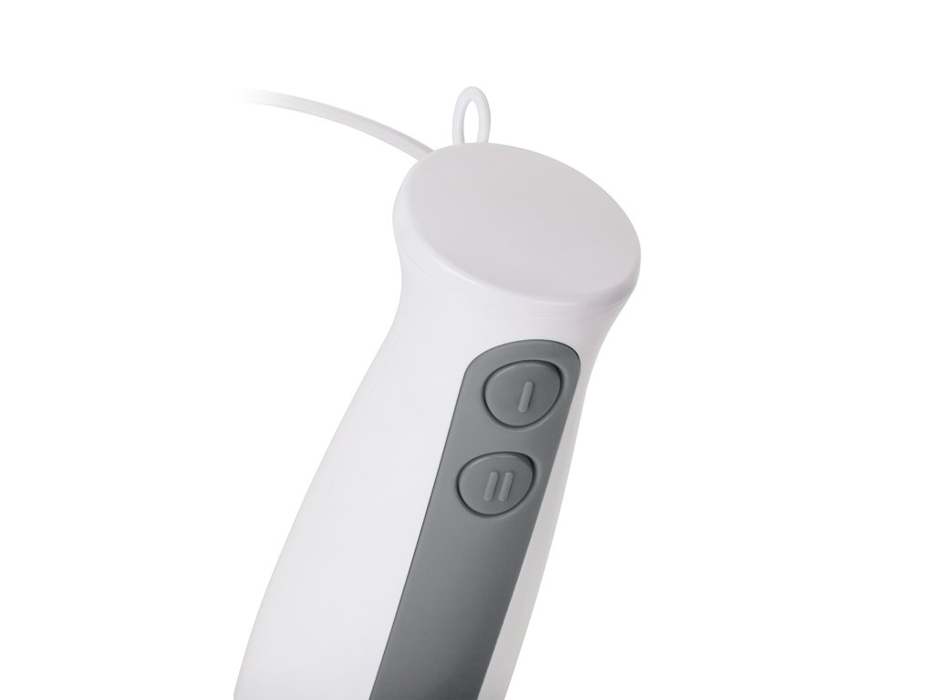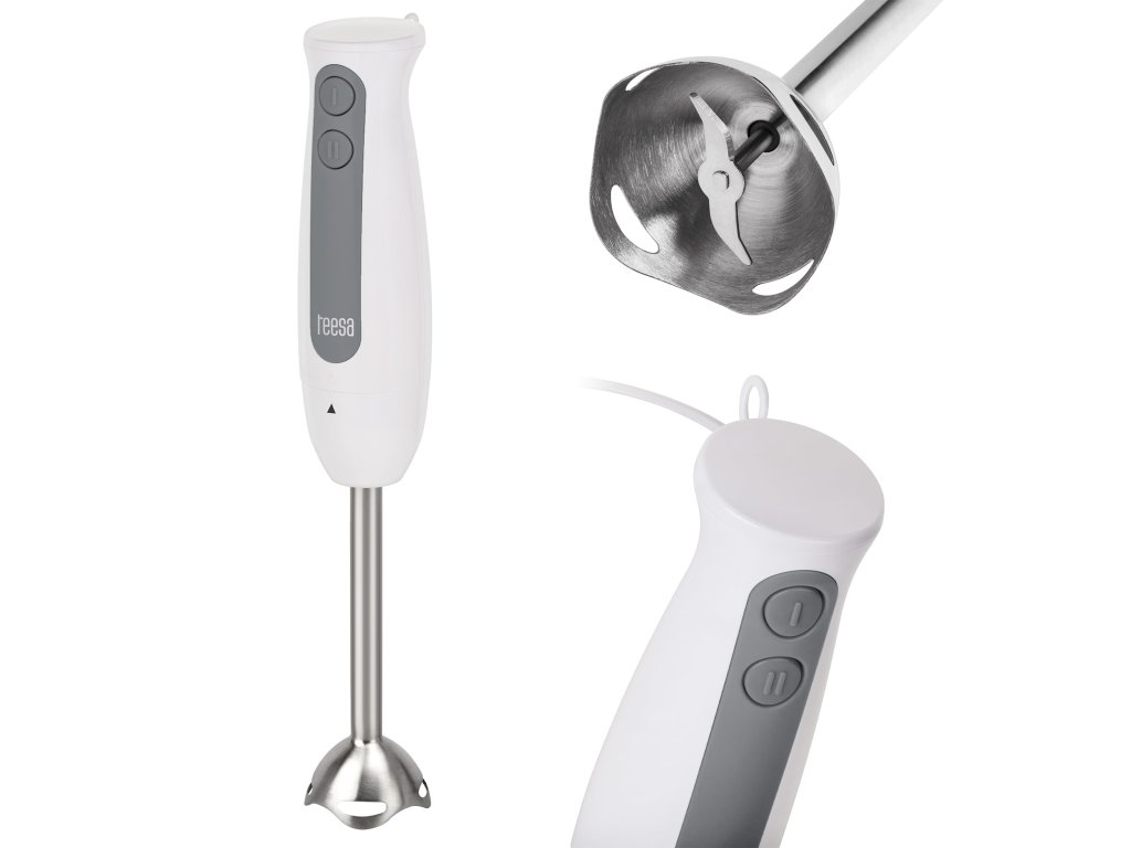 Ta izjemno priročna in enostavna naprava za uporabo je opremljena z visokokakovostnimi rezili iz nerjavečega jekla, zato ste lahko prepričani, da vam bo dolgo služila. Mešalnik vam bo zagotovo hitro postal všeč ne samo vizualno, temveč tudi zaradi dveh hitrosti delovanja, ki poskrbijo, da se odlično obnese pri pripravi juh, krem ali smutijev.