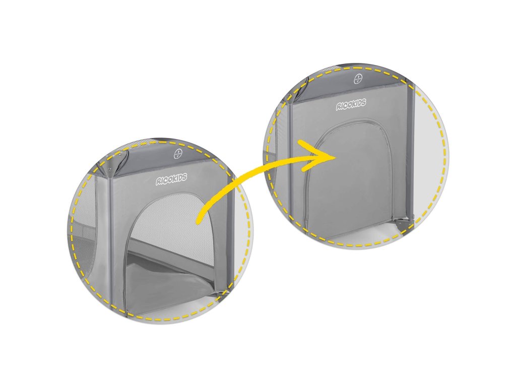 Odstranljiv stranski vhod je za majhne otroke neprehoden, zahvaljujoč zadrgi, všiti z zunanje strani. Po drugi strani pa za starejše, spretnejše in bolj mobilne omogoča samostojen, udoben in varen vstop in izstop iz posteljice? tako se ne bodo trudili splezati na zgornji rob.