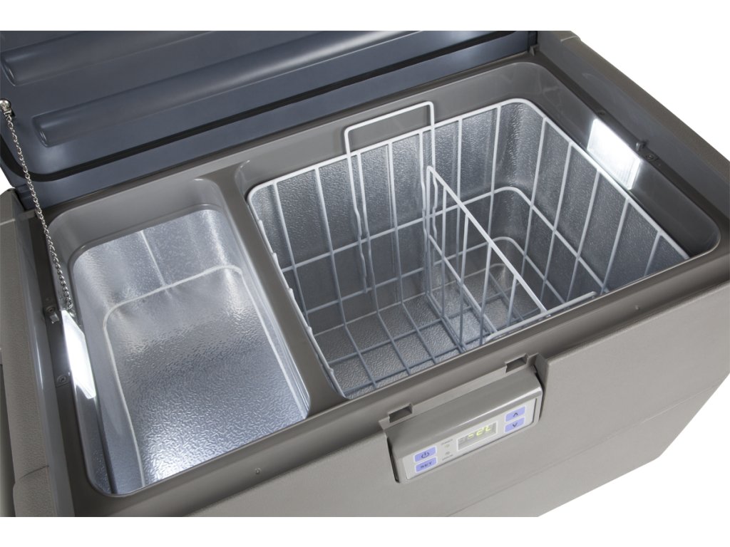 Posebej zasnovani dve komori, izmed katerih je ena opremljena z mrežo z nastavljivim prostorom, omogočata lažje organiziranje in shranjevanje hrane v hladilniku. Funkcionalni zaslon poenostavlja nastavitev temperature v napravi in spremembo merskih enot oC / oF. Hladilnik omogoča napajanje iz avtomobilskega priključka za cigaretne vžigalnike 12/24 V. Pomembno je, da lahko glede na potrebe nastavite ustrezen zaščitni način, s čimer zagotovite, da delovanje naprave ne izčrpa akumulatorja vašega avtomobila.
