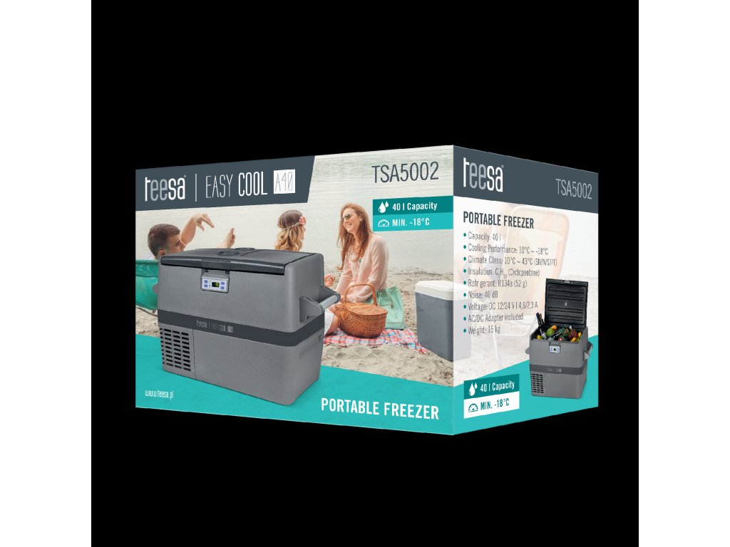 Prenosni hladilnik Teesa je izdelek, ki ga bodo cenili ne le profesionalni vozniki, temveč tudi ljubitelji kampiranja. Naprava, ko so temperature visoke, omogoča tako ohlajanje kot tudi zamrzovanje hrane do -18°C, kar v kombinaciji z veliko kapaciteto – 40 l – pomeni, da je idealna tudi za uporabo v gostinskih obratih.