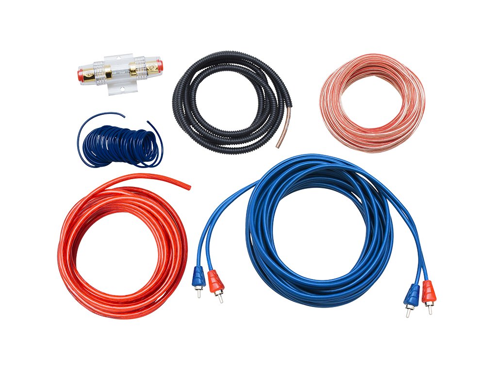 Univerzalni komplet kablov, ki omogoča priključitev ojačevalnika na avtomobilski avdio sistem.KOMPLET VSEBUJE: