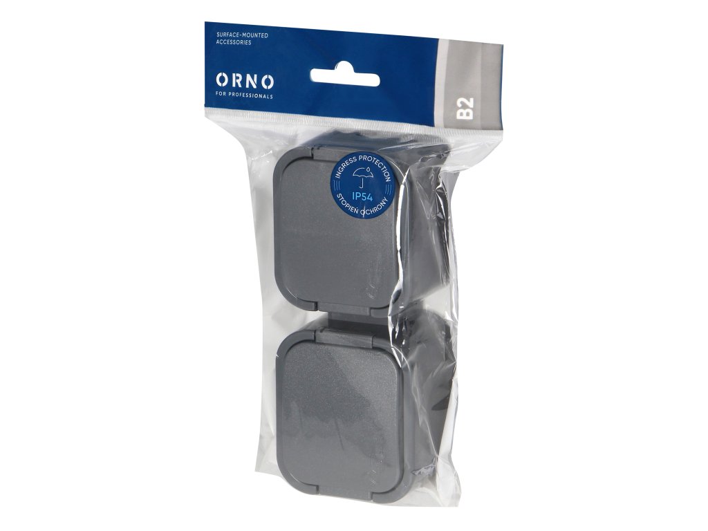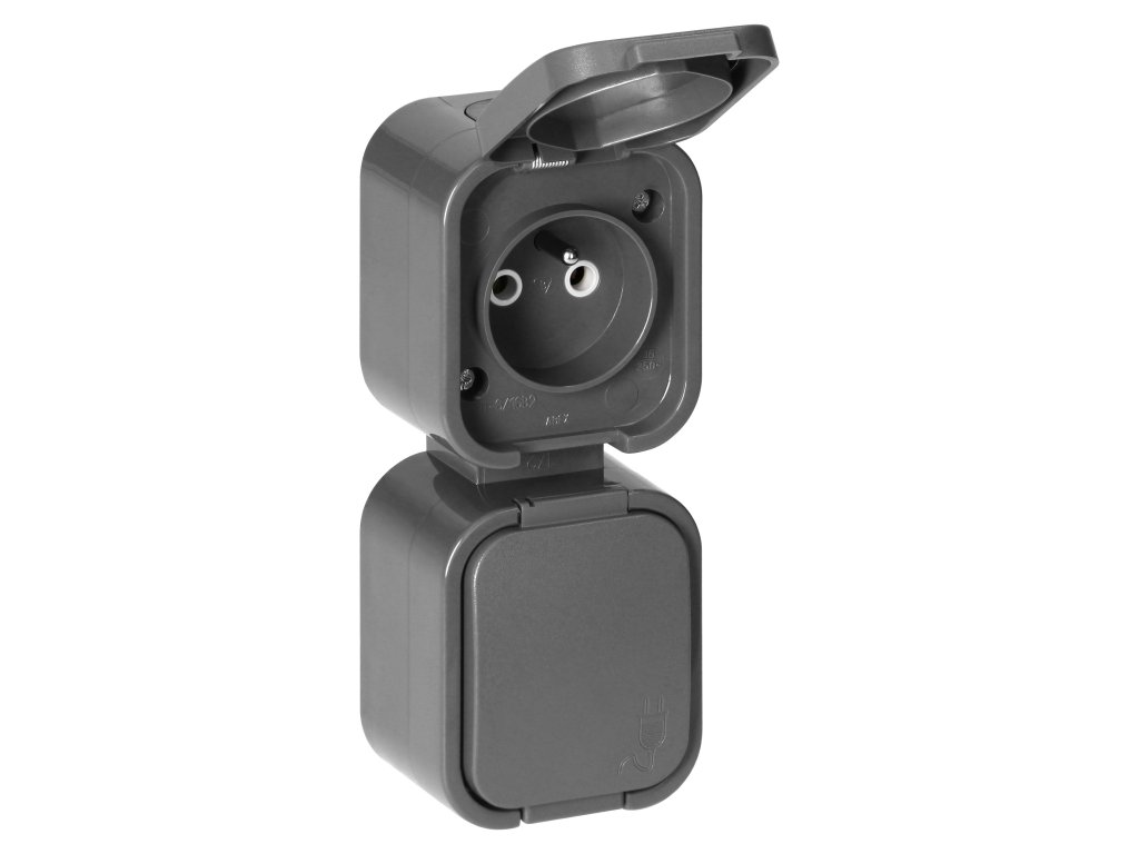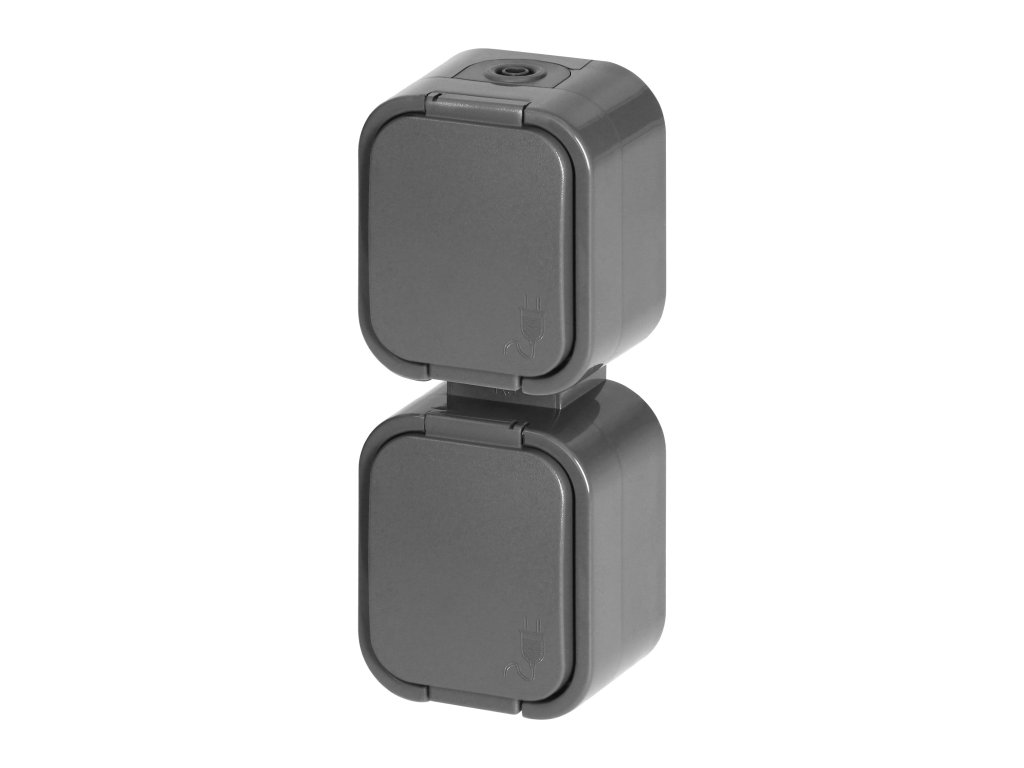 Površinska dvojna vtičnica 2x2P+E, vodoodporna s pokrovom, navpična B2, IP54, NT-6B2/P, siva