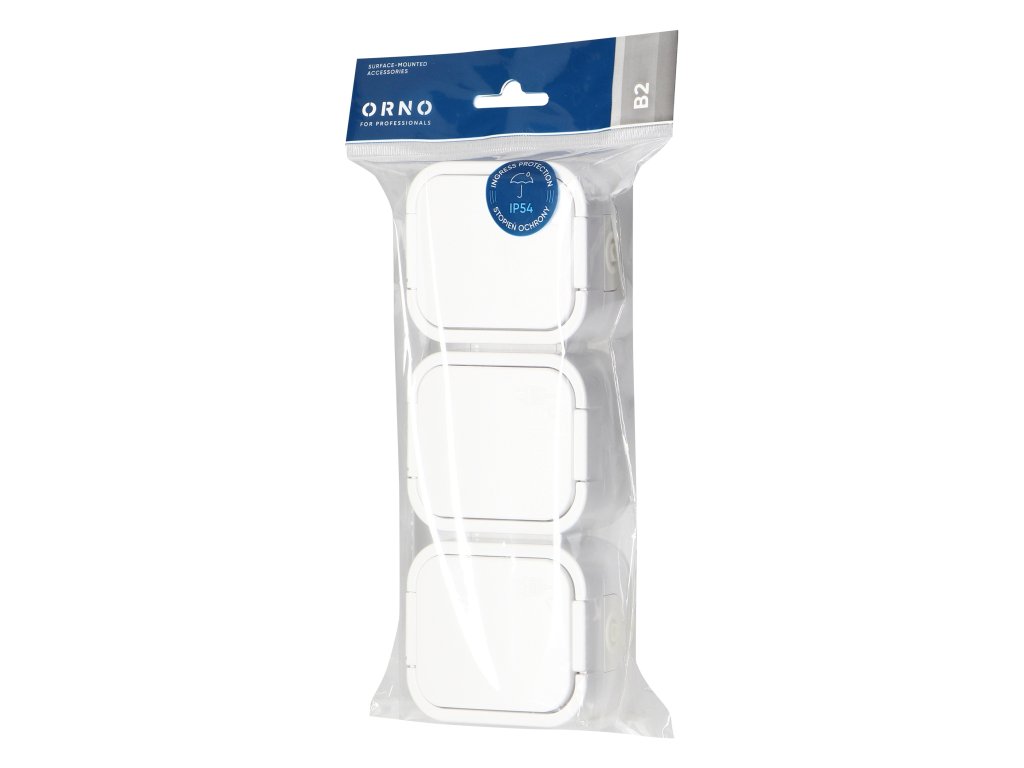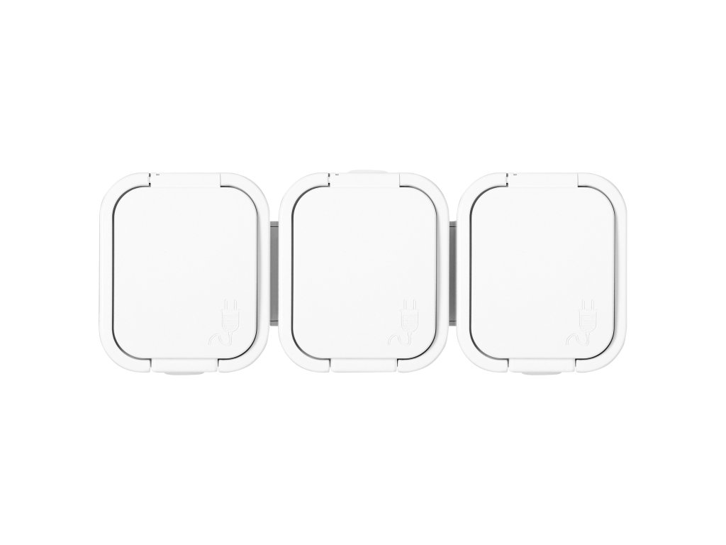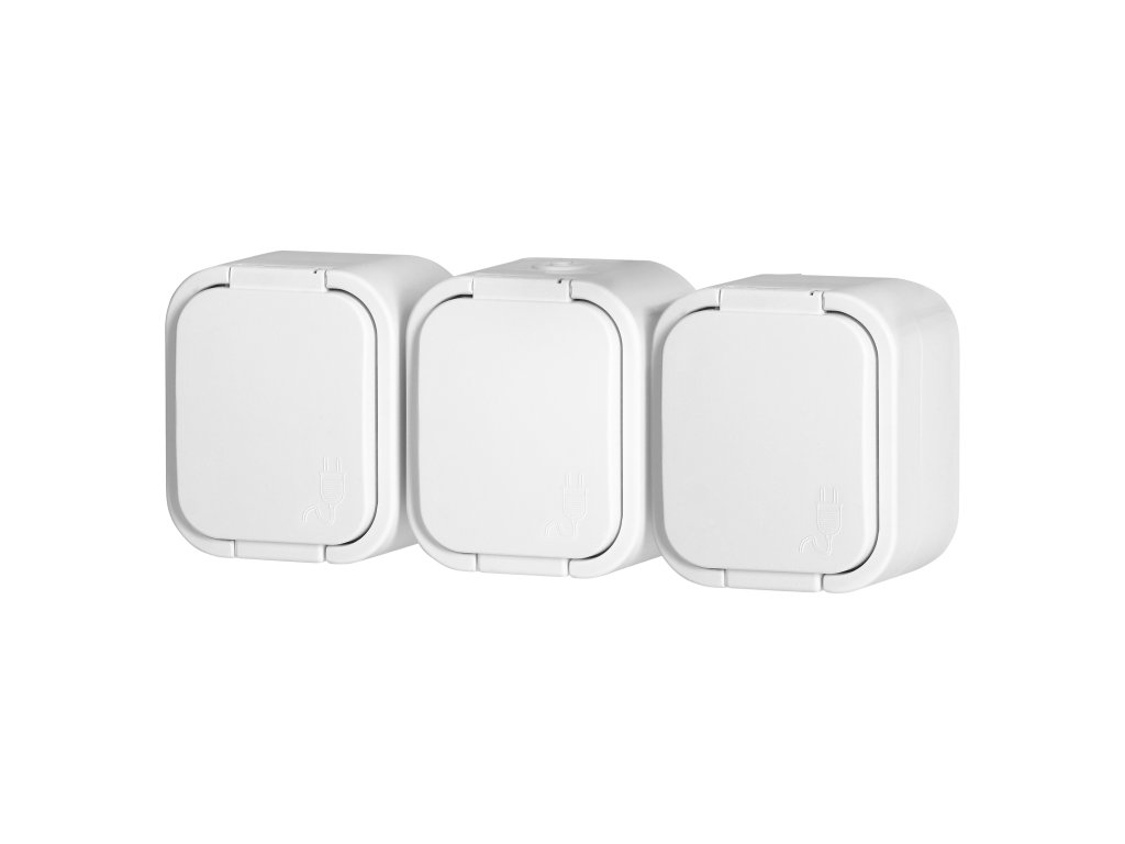 Površinsko nameščena trojna vtičnica 3x2P+E, odporna proti škropljenju s pokrovom B2, IP54, NT-316 B2, bela