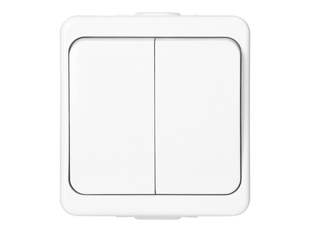 Površinsko nameščeno dvogumbno stikalo 10A, 250V, IP44, PAMETNO, belo