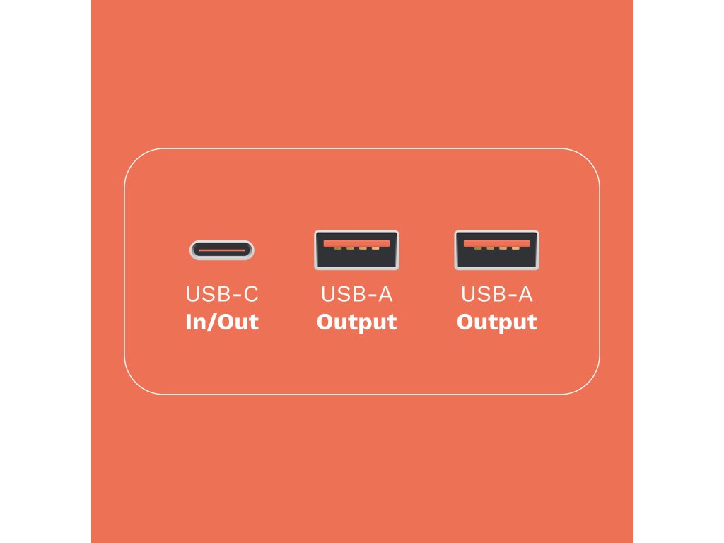 Opremljen z dvema USB in USB-C vhodoma, prostorni power bank Kruger&Matz ponuja širok spekter združljivosti. Zaradi svoje napredne funkcionalnosti je naprava idealna za polnjenje različnih elektronskih naprav v pisarni, na potovanju ali na kampiranju.