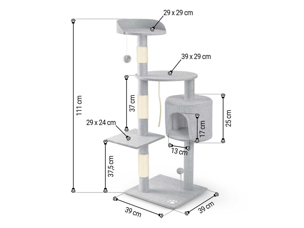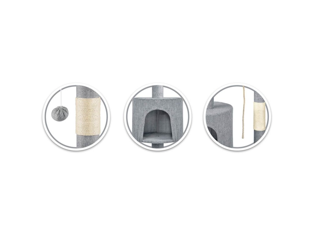 - 3 stebri oviti z močnim sisalnim vrvjo za brušenje krempljev,