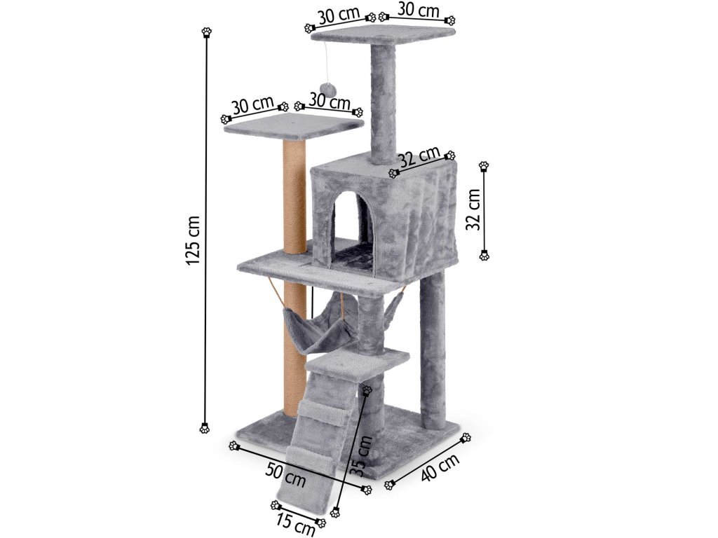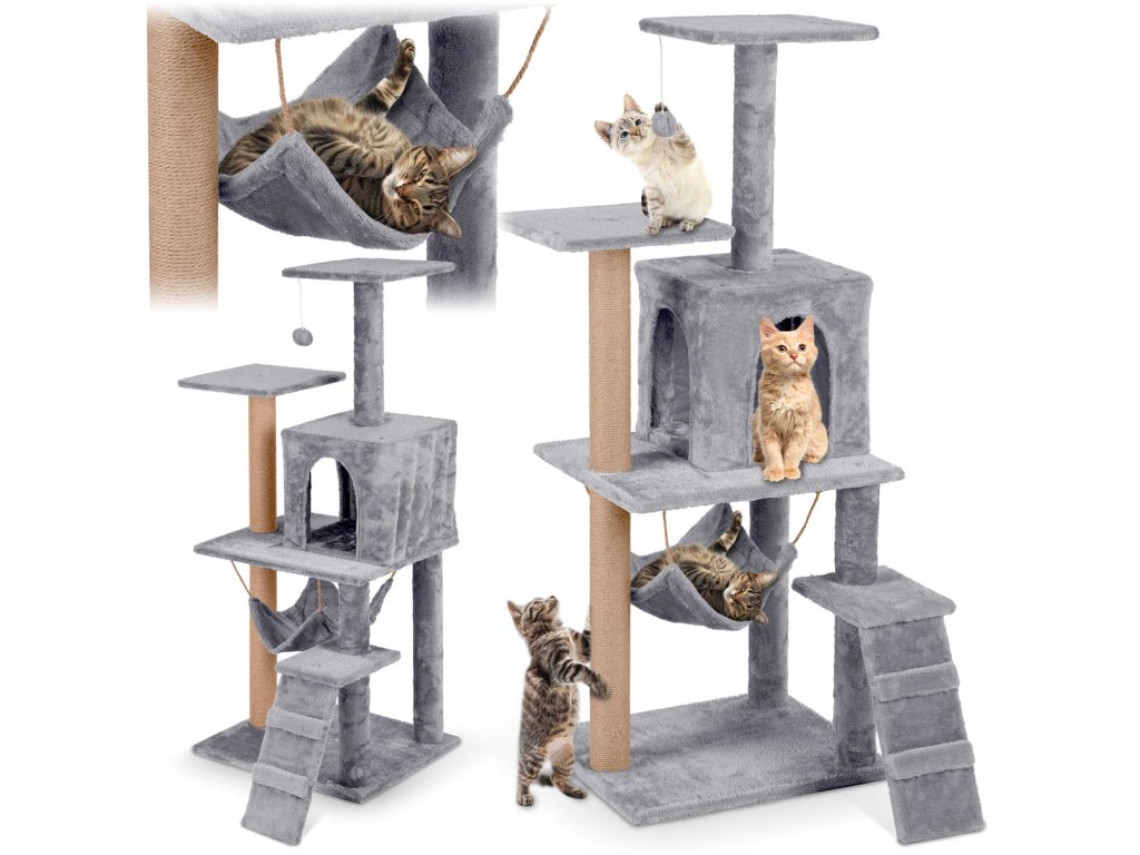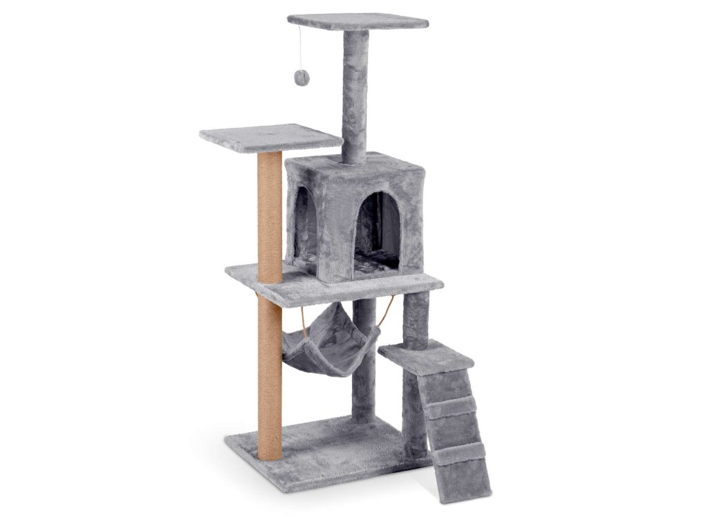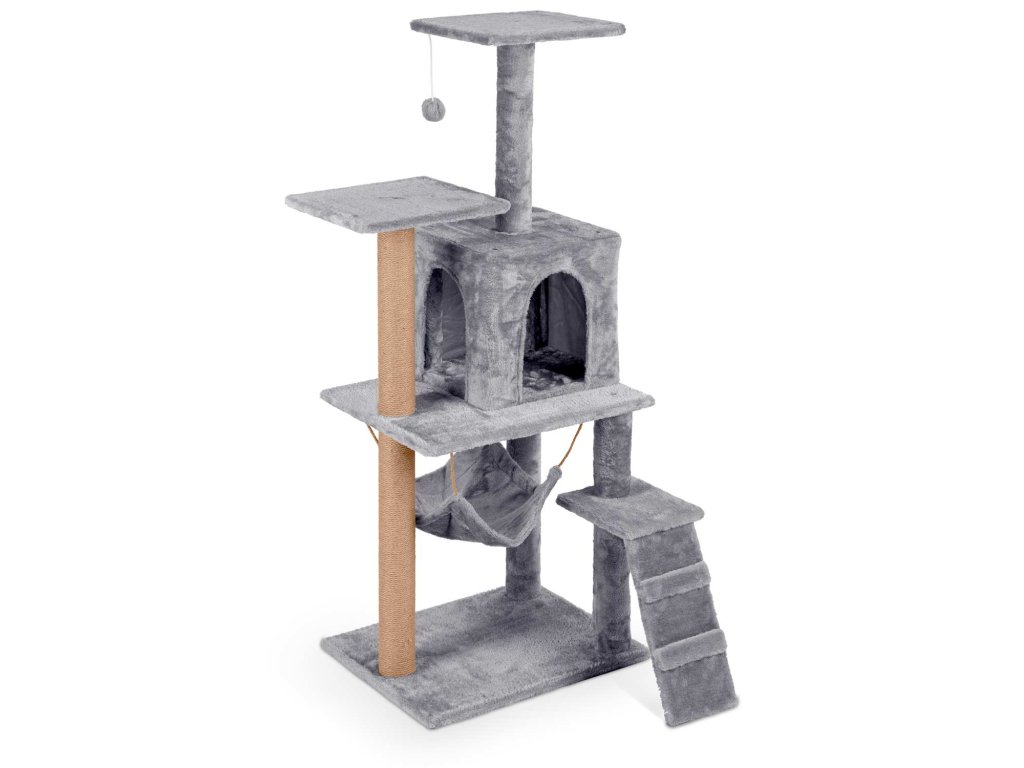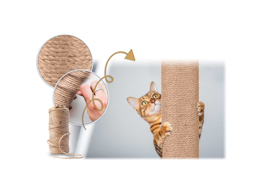 - 2 stebri prevlečeni z močnim sisalovim vrvjo za brušenje krempljev,