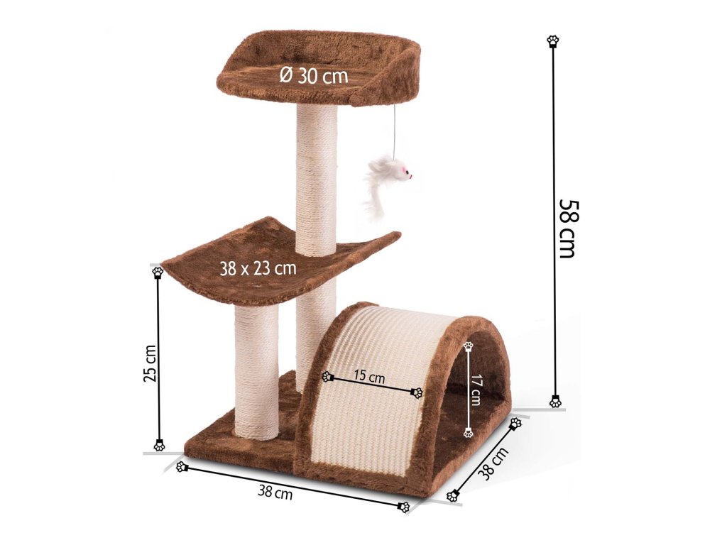 - 3 stebri, prevlečeni z močnimi sisalovimi vrvmi za brušenje krempljev,