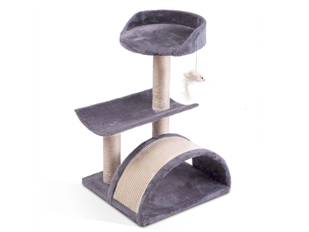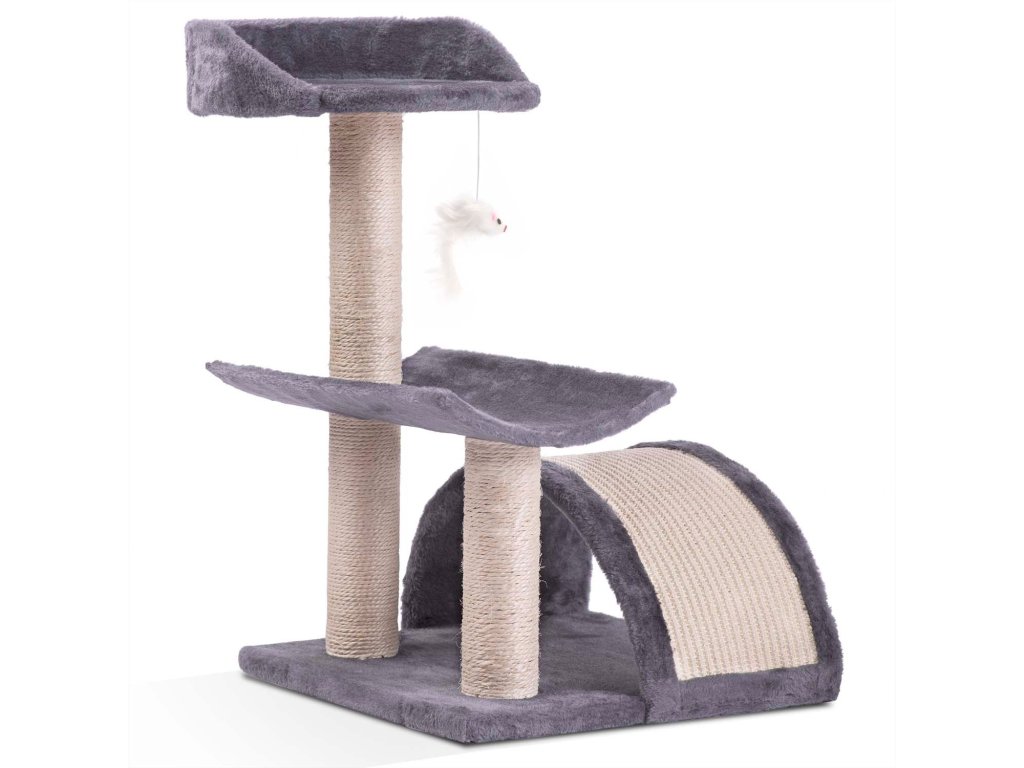 - 3 stebri obloženi z močnim sisalovim vrvjo za brušenje krempljev,