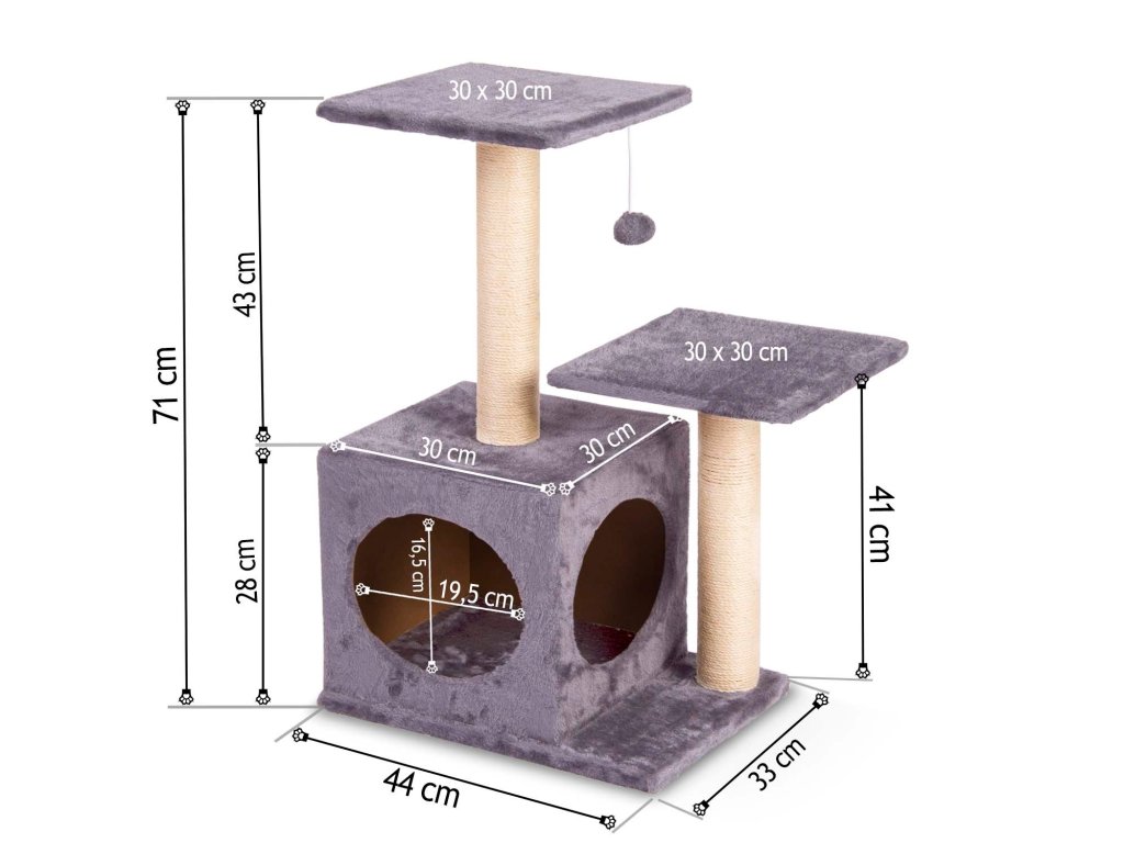 - 2 stebri obloženi z močnimi sisalovimi vrvmi za brušenje krempljev,