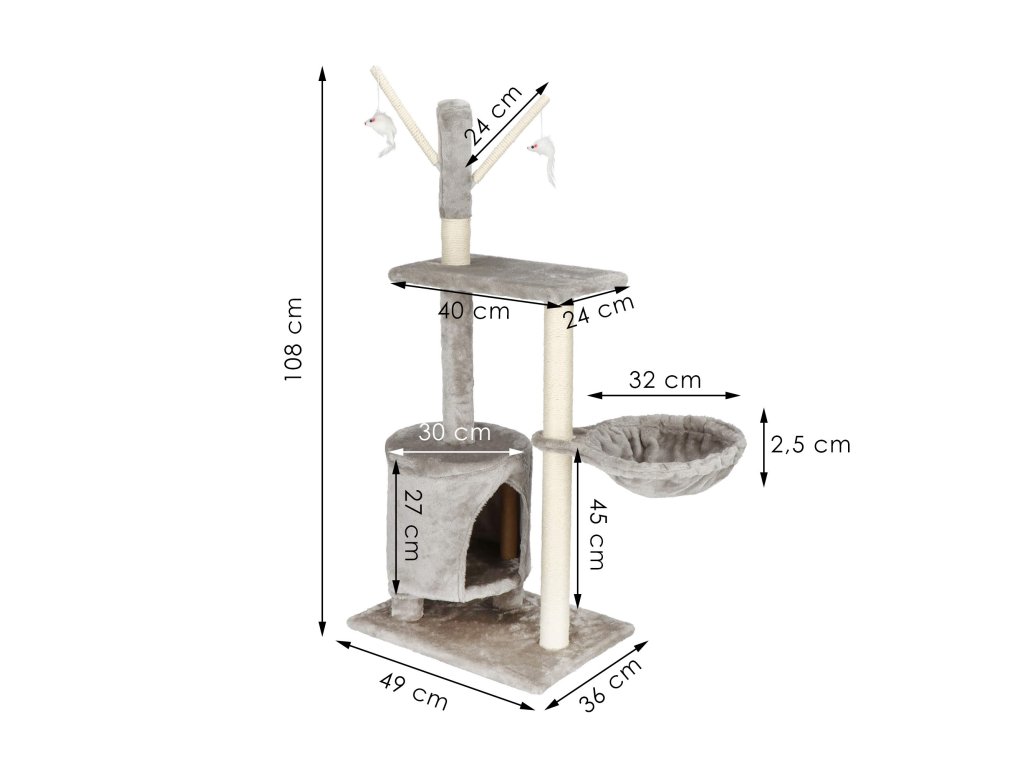 - Višina od vrha hišice do 1. platforme: 37 cm