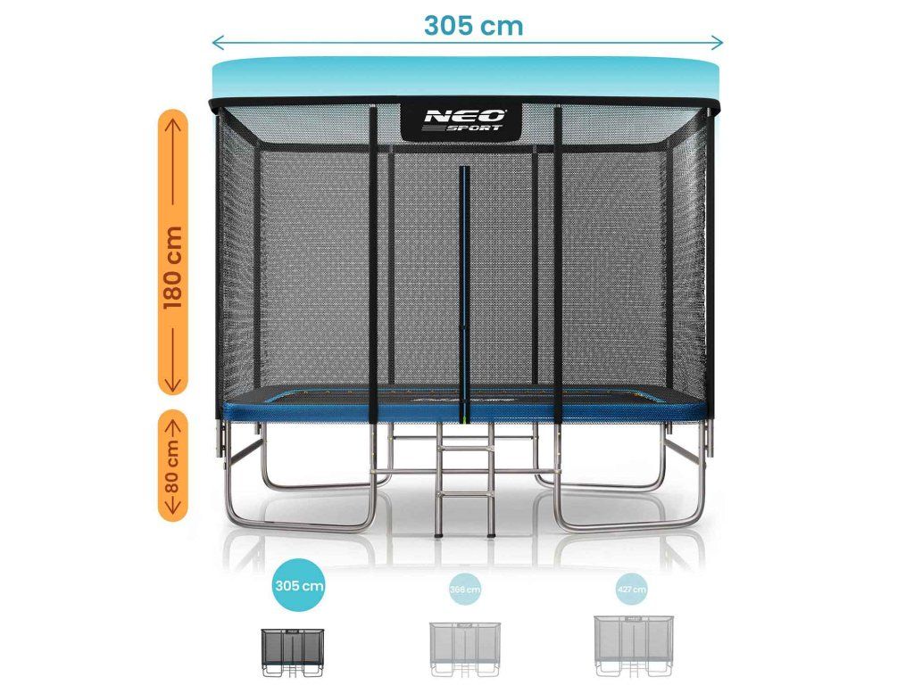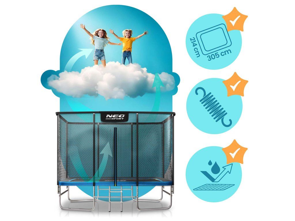 Pravokotna vrtna trampoline 10x7 ft/305x213 cm z zunanjim varnostnim mrežnim ogrodjem in lestvijo Neo-Sport