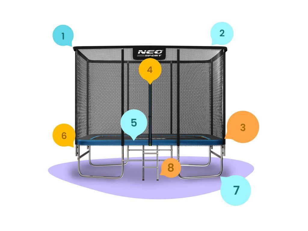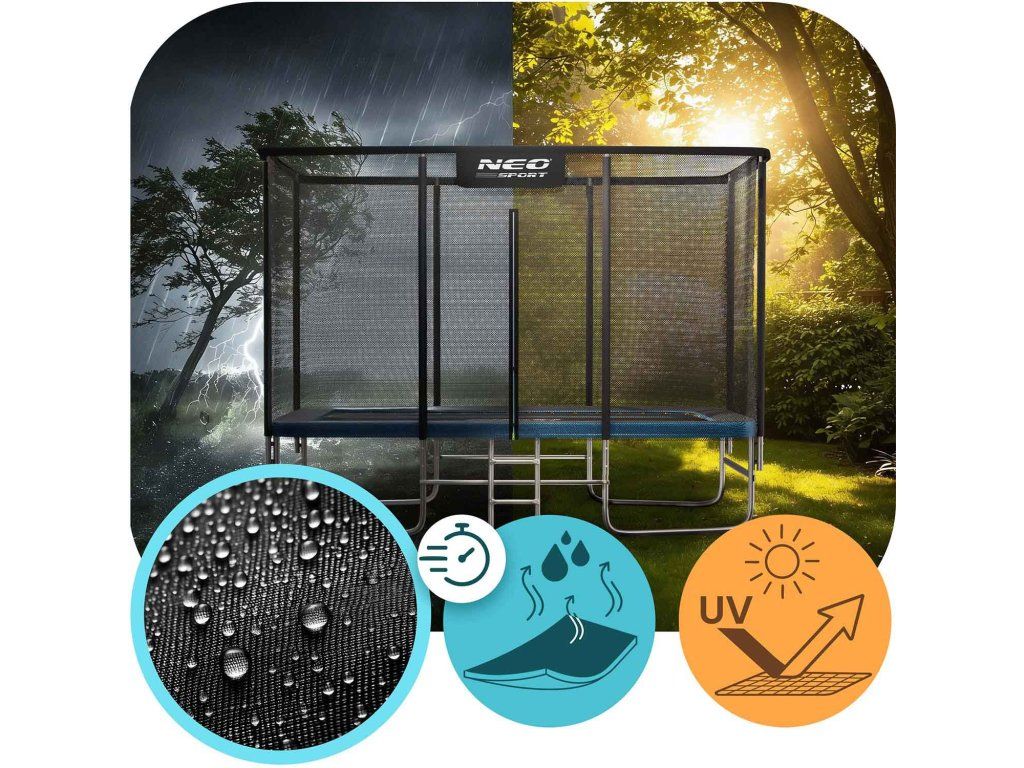 Okvir trampolina Neo-Sport je izdelan iz visokokakovostnih pocinkanih jeklenih cevi, odpornih proti koroziji, UV-sevanju in intenzivni uporabi.