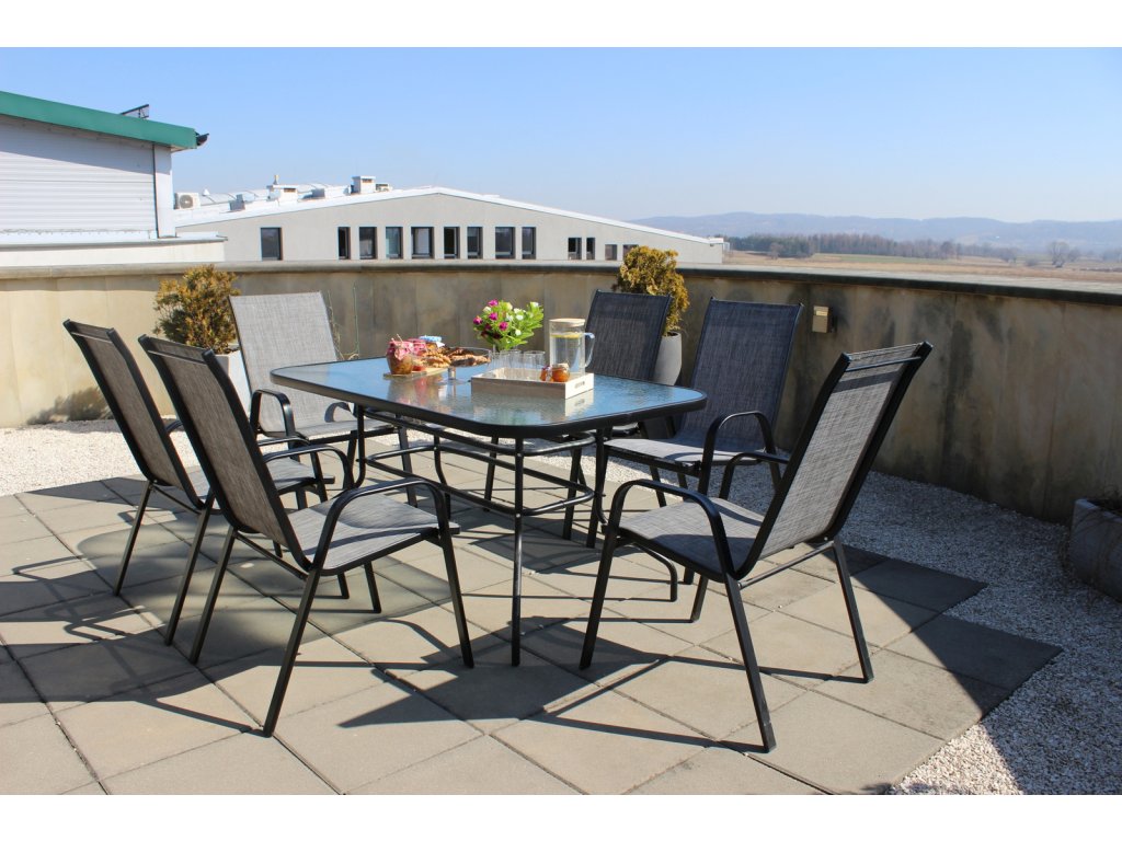 Klasčna vrtna miza s stekleno ploščo, primerna za večino modelov stolčkov. Odlično se prilega v vrt ali na teraso ob večjih družinskih srečanjih ali s prijatelji. Protisd slipne nogice zagotavljajo stabilnost in varno uporabo. Noge mize so bile dodatno oblikovane tako, da podpirajo ploščo mize in krepijo njene robove. Dodatni okvir, ki zagotavlja noge, dodaja celoti odpornost in omogoča večje obremenitve plošče.