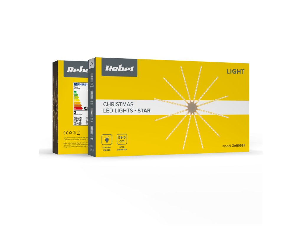 LED zvezda Rebel navdušuje ne samo z izgledom, ampak tudi z enostavnostjo uporabe. Praktično držalo omogoča enostavno in stabilno obešanje na izbranem mestu, medtem ko dolgi, 3-metrski kabel zagotavlja svobodo pri aranžiranju. Tako boste brez težav ustvarili praznično vzdušje tam, kjer se svetloba najlepše pokaže.