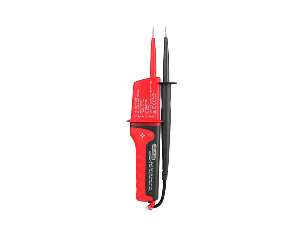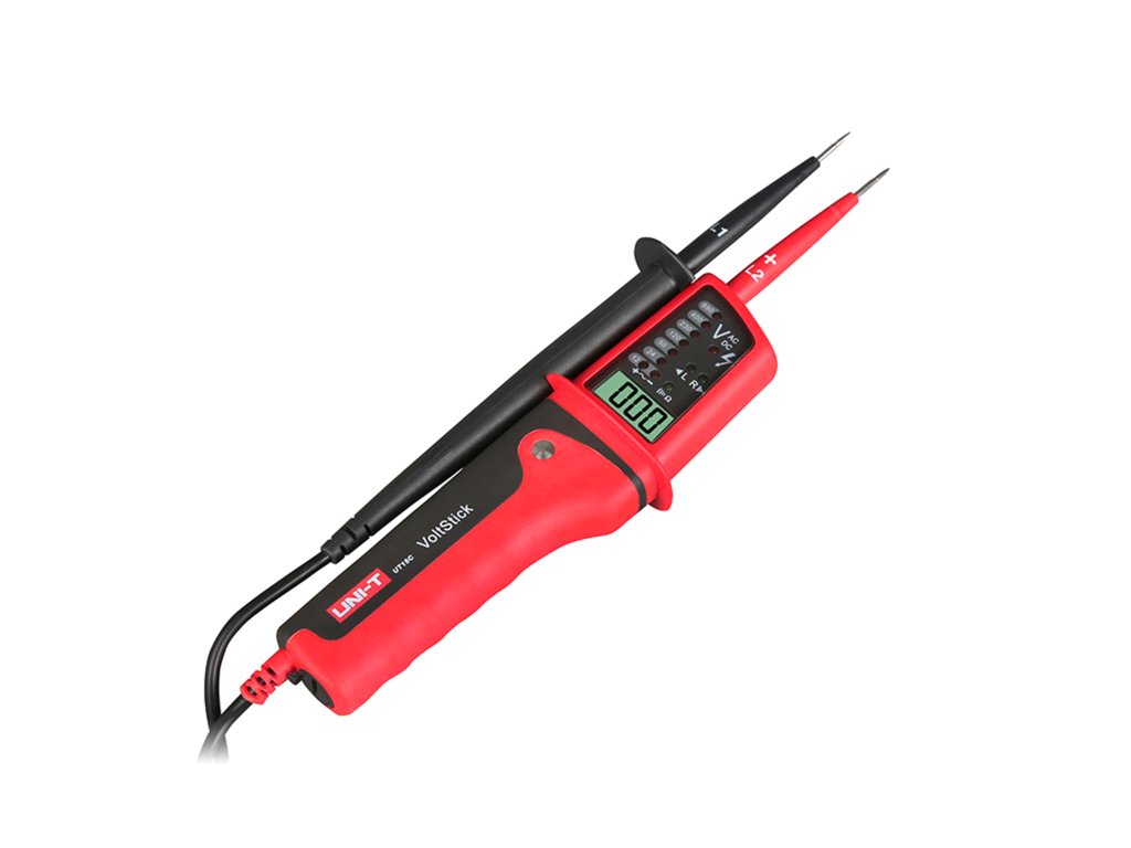 UT15C omogoča merjenje AC/DC napetosti v širokem razponu od 12 V do 690 V z natančnostjo ±(3%+5) za napetosti v razponu 24 V – 690 V. Naprava je opremljena z LED indikatorjem, ki jasno prikazuje trenutno napetost. Tester ponuja tudi funkcijo testiranja vrstnega reda faz pri napetostih od 100 V do 690 V ter detekcijo napetosti enofazne napetosti s frekvenco od 50 Hz do 400 Hz, kar je nujno pri delu s trofaznimi instalacijami.