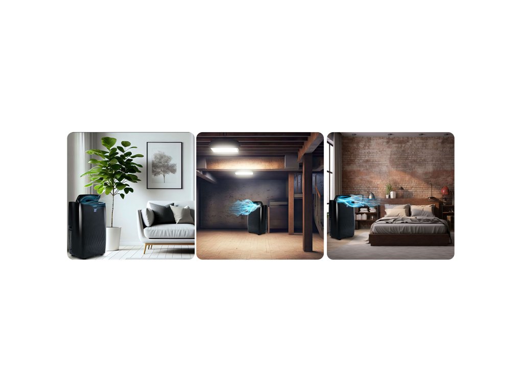 - RAZVLAŽEVANJE — zmanjšuje vlažnost zraka, odpravlja občutek zatohlosti in preprečuje nastajanje plesni ter drugih težav povezanih s prekomerno vlago.