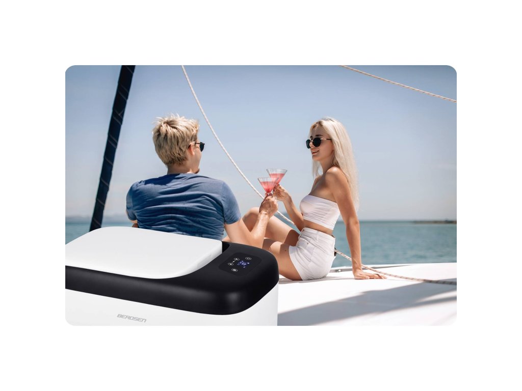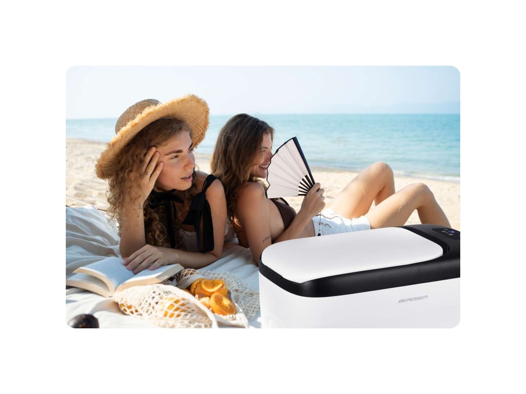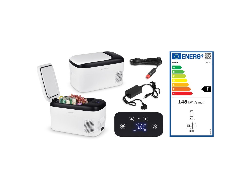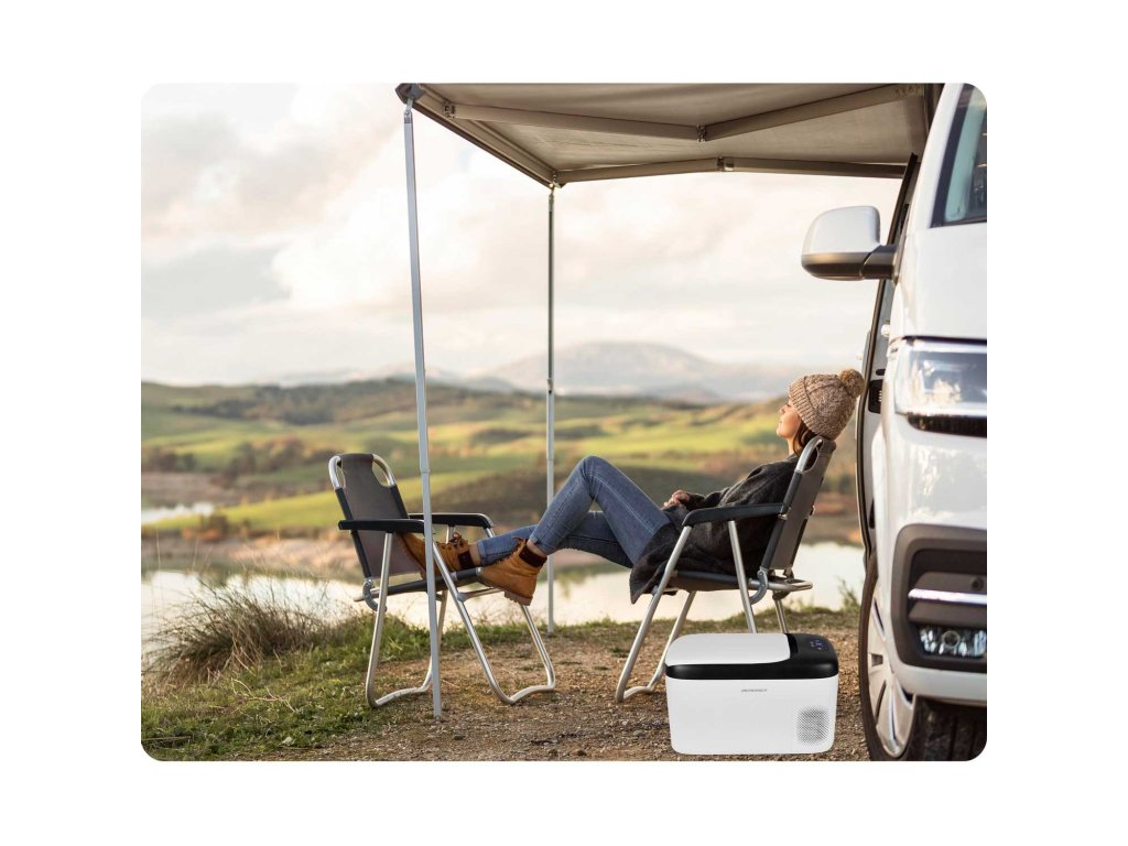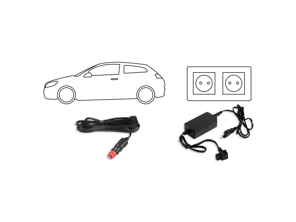 Zahvaljujoč izjemno dolgemu (3,5 m) napajalnemu viru cigaretnega vžigalnika lahko hladilnik udobno priključite v vtičnico avtomobila med sproščanjem, npr. ima