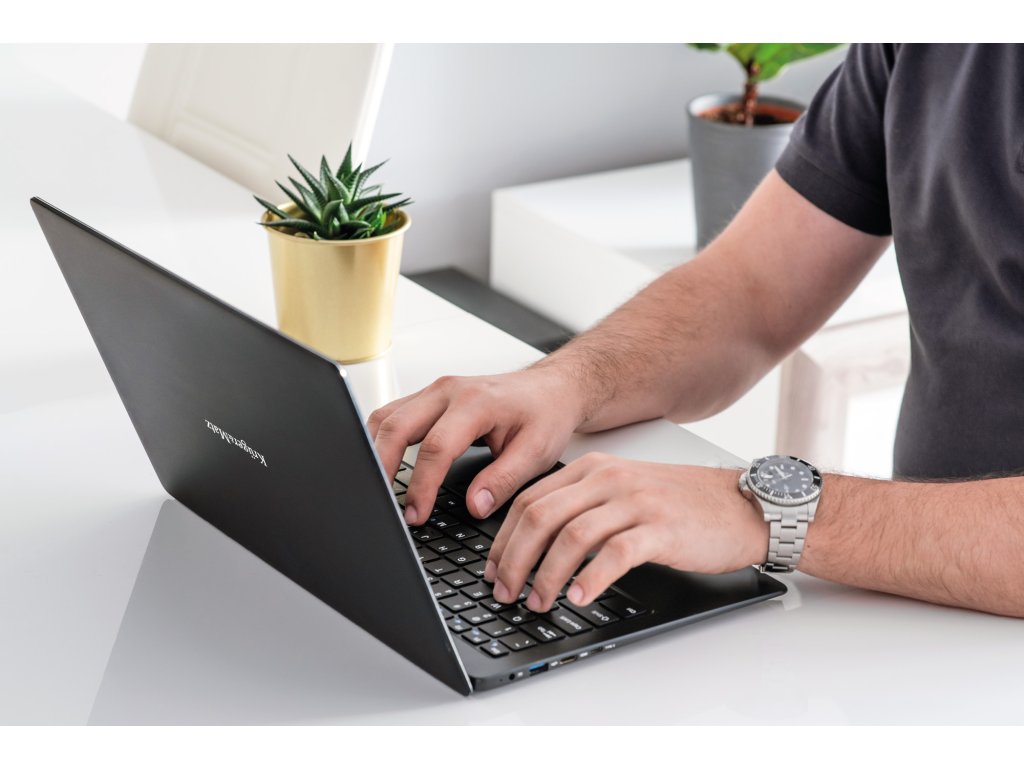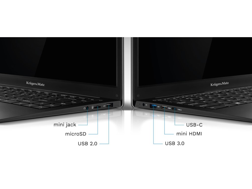 Elegantno ohišje ultrabooka Kruger&Matz Explore 1406 v mat črni barvi mu daje eleganco, ki se odlično vklopi tako v pisarniško okolje kot tudi domače prostore. Pomembno je, da je naprava zelo tanka in lahka, kar znatno poveča udobje pri prenašanju.