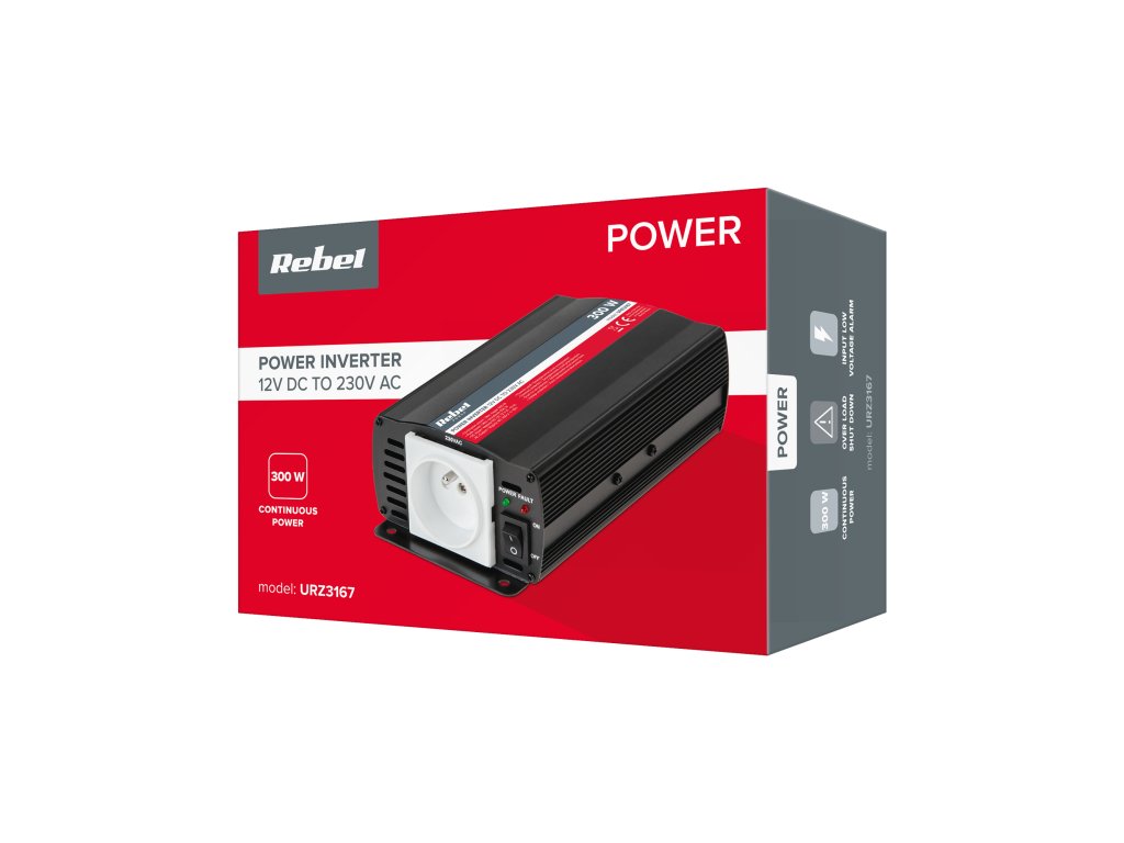 Pretvornik REBEL 12V/230V 300W (vrsta vtičnice: poljske, francoske)