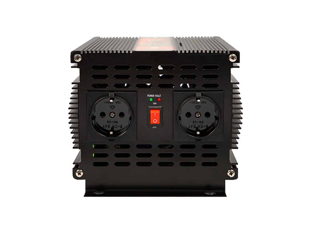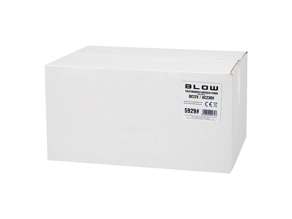 Elektronski pretvornik napetosti BLOW HRP-2500 . Naprava pretvarja enosmerno napetost 12V na izmenično napetost 230V. Zaradi tega je idealna za osebne avtomobile in druge vozila, opremljena z inštalacijo 12V. Odlična je za napajanje prenosnikov, netbookov, polnilnikov, majhnih gospodinjskih aparatov itd. Njena visoka moč omogoča priključitev zahtevnejših naprav, ki za zagon potrebujejo več moči. Napravo odlikuje trdna izdelava in nizka stopnja odpovedi. Ohišje pretvornika je v celoti iz aluminija, kar prispeva k odvajanju toplote. Dodatno je opremljen s tihim ventilatorjem, ki hladi notranje sisteme naprave. HRP-2500 ima vrsto zaščit za zaščito priključenih naprav, med drugim: zaščita pred preobremenitvijo, toplotna zaščita, zaščita pred kratkim stikom in druge. Na sprednji strani pretvornika sta nameščeni dve AC vtičnici, kar omogoča priključitev dveh naprav, ki lahko delujeta neodvisno. Napetost 12V se pripelje do pretvornika neposredno iz akumulatorja s pomočjo kablov, ki so priloženi v kompletu. Obstaja možnost priključitve dveh akumulatorjev (npr. v primeru, ko je eden prešibak)