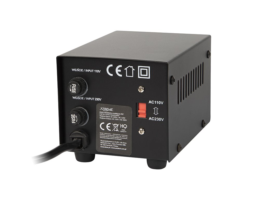 Pretvornik napetosti je namenjen za znižanje izmenične napetosti AC - 230V na izmenično napetost AC 110V in zvišanje izmenične napetosti AC 110V na AC 230V. Izdelek ima kompaktno strukturo in je popolnoma prenosljiv. Na sprednji plošči pretvornika sta dve vtičnici 110V - 230V in tudi stikalo za vklop naprave.