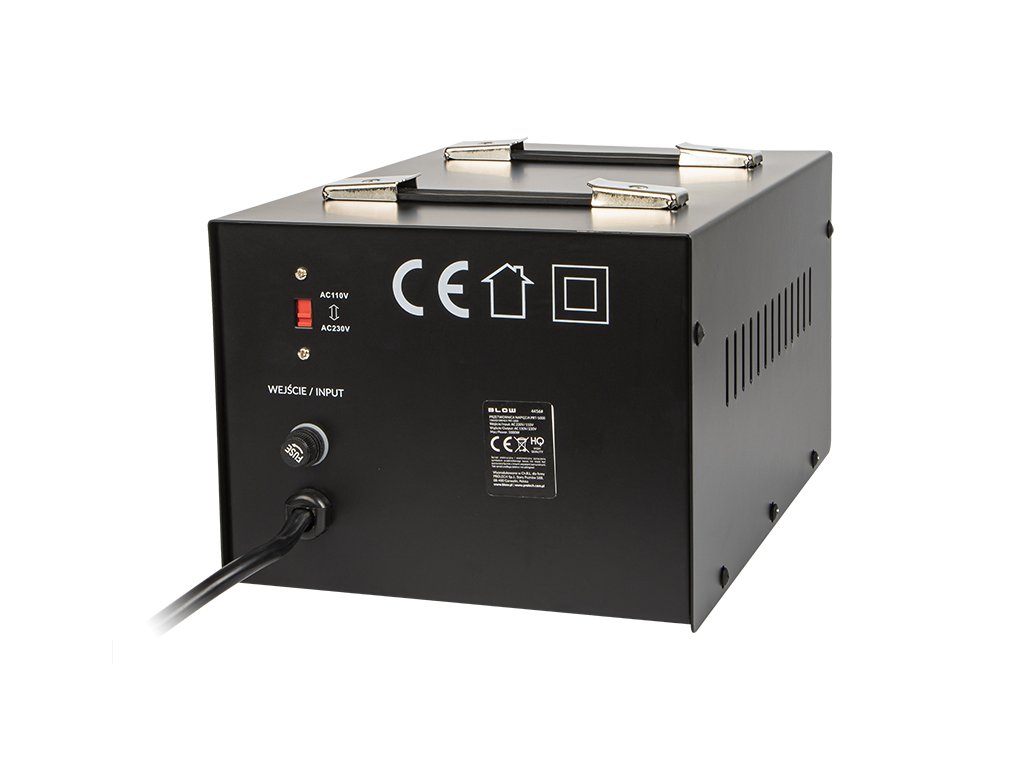Pretvornik napetosti, namenjen za znižanje izmenične napetosti AC - 230V na izmenično napetost AC 110V in zvišanje izmenične napetosti AC 110V na AC 230V. Izdelek ima kompaktno strukturo in je popolnoma prenosljiv. Na sprednji plošči pretvornika sta dve vtičnici 110V - 230V ter stikalo za napravo.