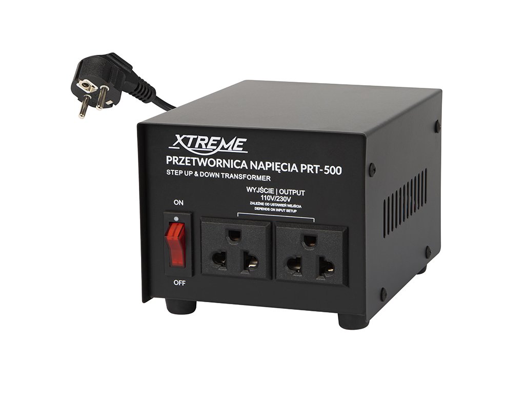 Pretvornik napetosti namenjen za znižanje izmenične napetosti AC - 230V na izmenično napetost AC 110V in za zvišanje izmenične napetosti AC 110V na AC 230V. Izdelek ima kompaktno strukturo in je popolnoma prenosljiv. Na sprednji plošči pretvornika sta dve vtičnici 110V - 230V ter stikalo za vklop naprave.