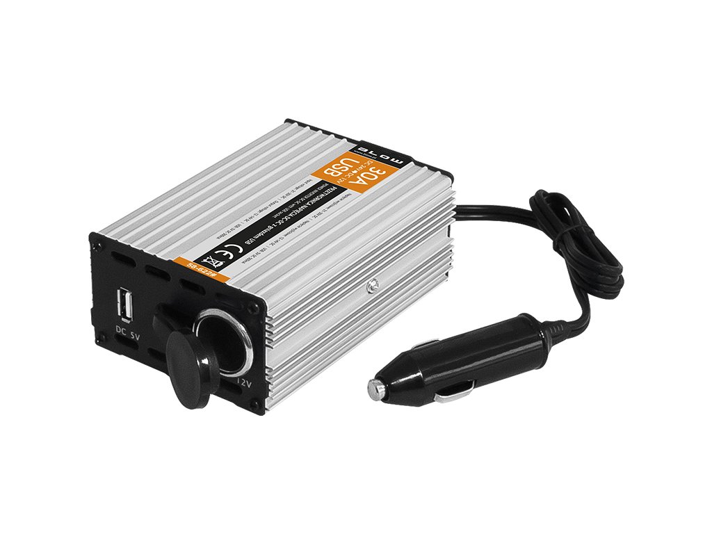Pretvornik namenjen avtomobilom z napetostjo 24V/12V- Izhodni tok: 30A (± 1A)- Vhod 24V (21-30V): avtomobilski priključek na kablu- Izhod 1: 13,8V (12-14V) avtomobilska vtičnica na ohišju- Izhod 2: USB vtičnica 5V DC 500mA- Delovna napetost: 21V-30V- Zaščita pred visokim vhodnim napetostjo: 30V-33V- Zaščita pred nizkim vhodnim napetostjo: 18V-21V- Izhodna napetost: 12V-14V- Zaščita pred preobremenitvijo- Zaščita pred kratkim stikom- Dovoljena delovna temperatura: 0-40C- Varovalka: 30A x 1