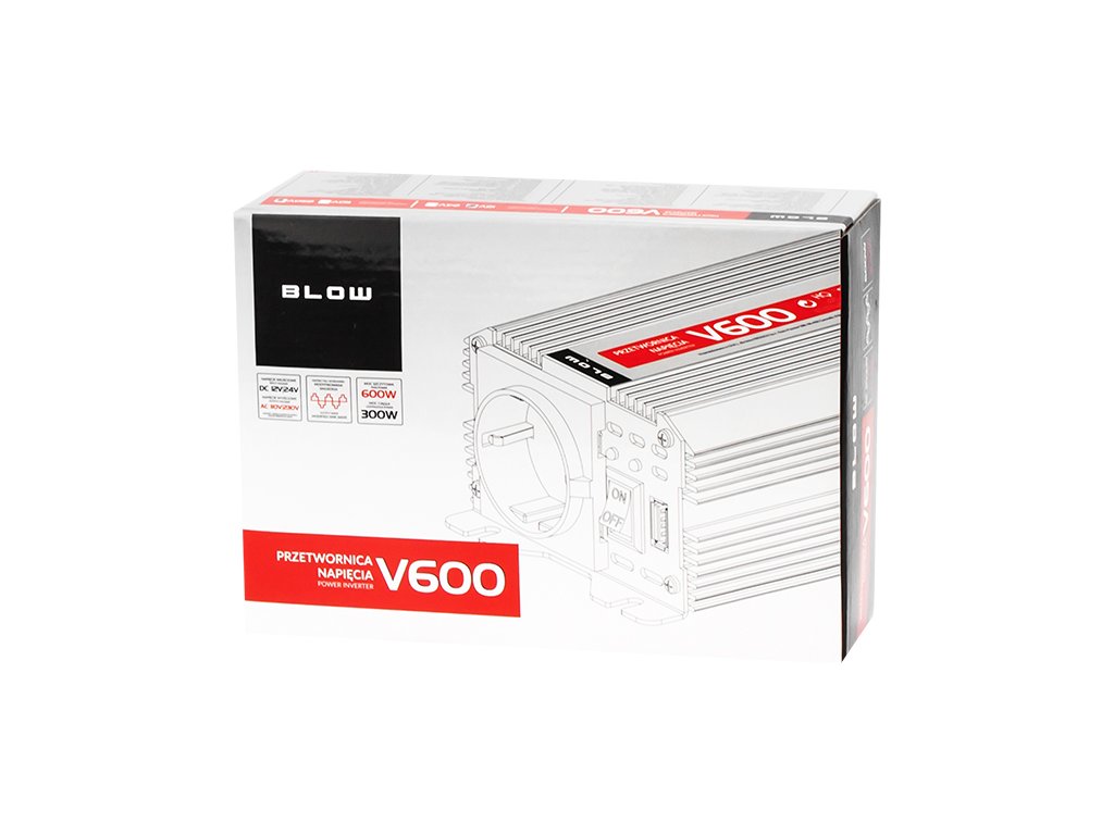Oprema se odlikuje s trdno izdelavo in nizko stopnjo okvar. Ohišje pretvornika je v celoti iz aluminija, kar prispeva k odvajanju toplote. Dodatno je opremljena s tihim ventilatorjem za hlajenje notranjih komponent naprave. Naprava ima vrsto zaščit za zaščito priključenih naprav, vključno z: zaščito pred preobremenitvijo, termo zaščito, kratkostično zaščito in drugimi. Pretvornik BLOW ima funkcijo samodejnega ponovnega zagona. Ko se pretvornik izklopi ob aktiviranju ene izmed zaščit, ni potrebno izključiti napajanja. Dovolj je zmanjšati obremenitev in pretvornik se bo samodejno zagnal. Delovanje se signalizira z LED diodami. Pretvornik ima komplet montažnih kablov za akumulator.