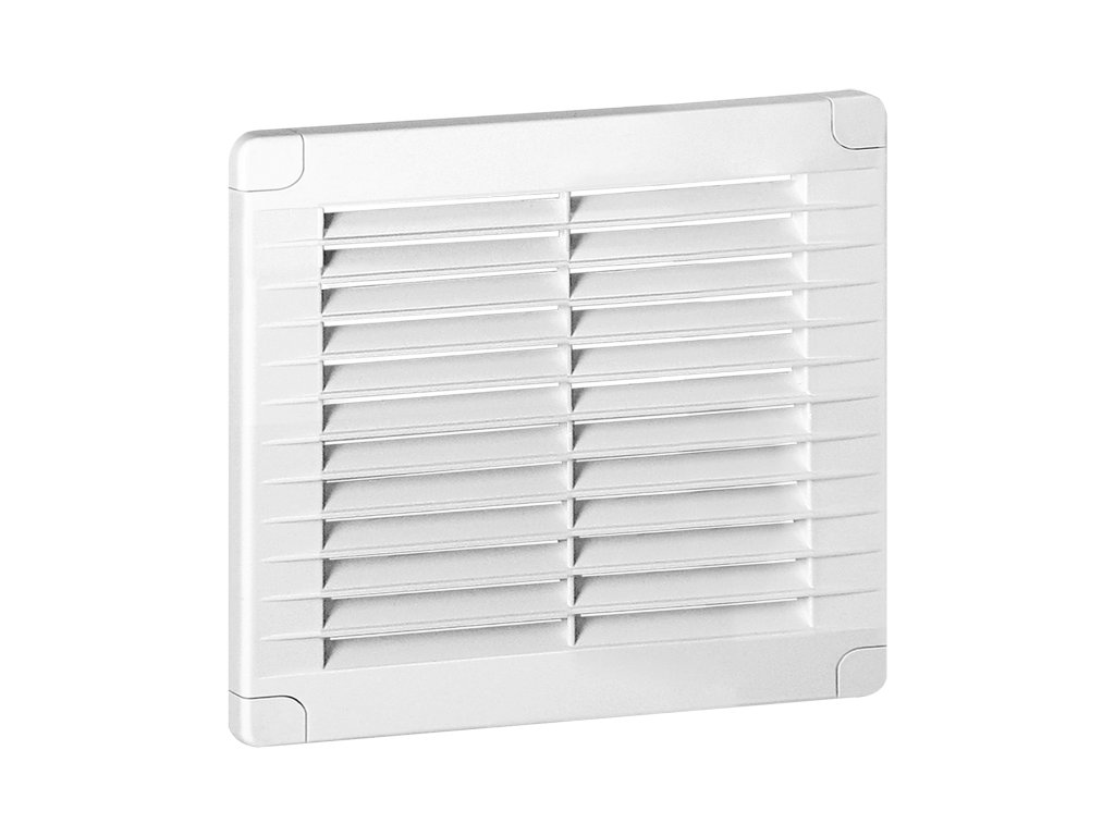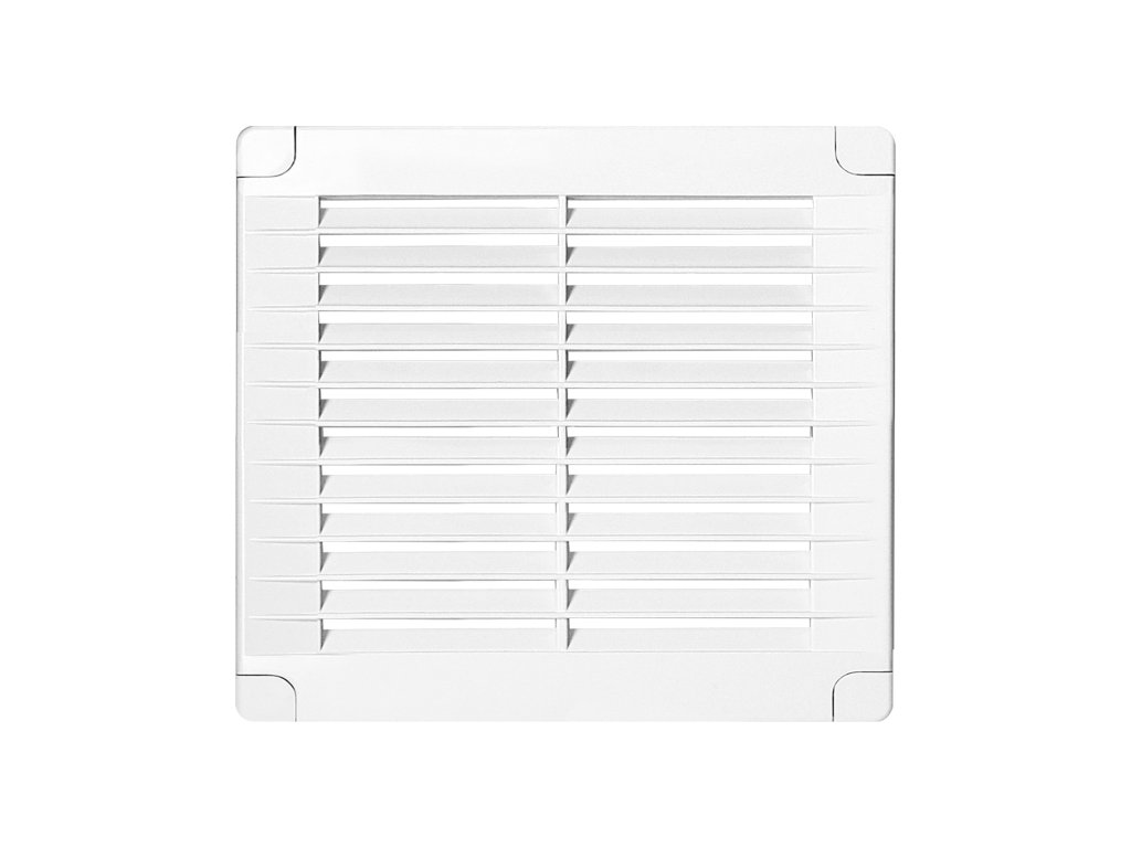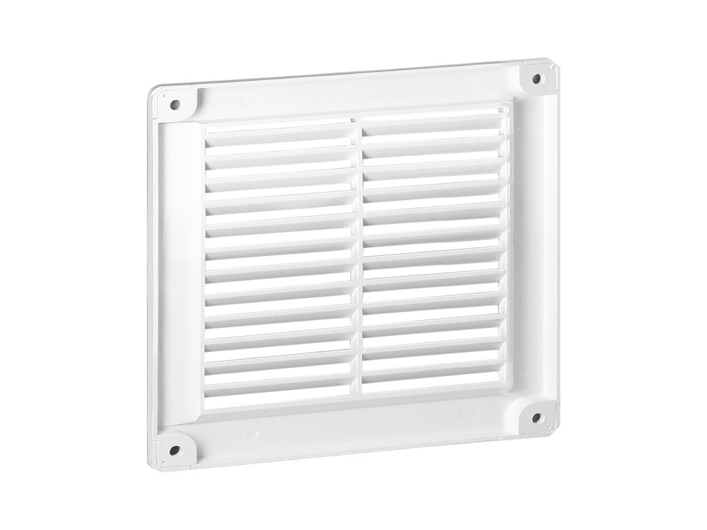Prezračevalna rešetka namenjena prezračevanju zunaj in znotraj stavbe. Rešetka ima luknje v vogalih za lažjo montažo. Luknje so prekrite s posebnimi pokrovi, tako da vijaki niso vidni. Nima prirobnice - je popolnoma ravna, kar pomeni, da lahko pokrije odprtino kakršnekoli oblike.Material rešetke: ABS.