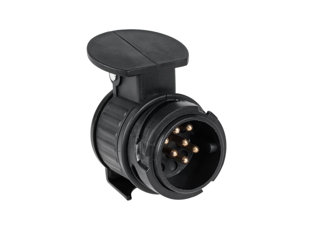 Dimenzije: Globina: 50mm Širina: 42mm Višina: 65mm Napetost 12V Število zatičev - 7 Nazivni tok: 20A Obseg obremenitve: 240W Material - ABSDimenzije: