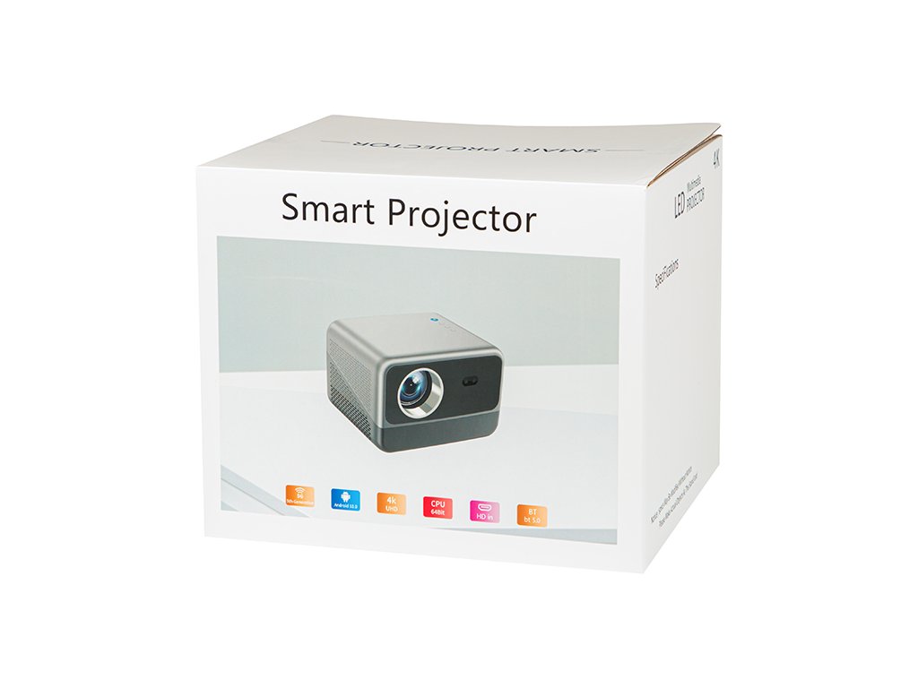 Projektor BLOW je sodobna naprava, ki vam omogoča ogled filmov, oddaj, iger in drugih multimedijskih vsebin na velikem zaslonu. Projektor ima vgrajen Android 10 sistem, ki omogoča dostop do številnih aplikacij in spletnih storitev. Na projektor se lahko povežete preko Wi-Fi, Bluetooth, HDMI, USB ali AV. Projektor ima nativno ločljivost 1080p in podpira dekodiranje 4K, kar zagotavlja visoko kakovost slike. Svetlost 500 ANSI lumnov in kontrast 1500:1 naredita sliko jasno in živahno tudi v nekoliko osvetljeni sobi.
