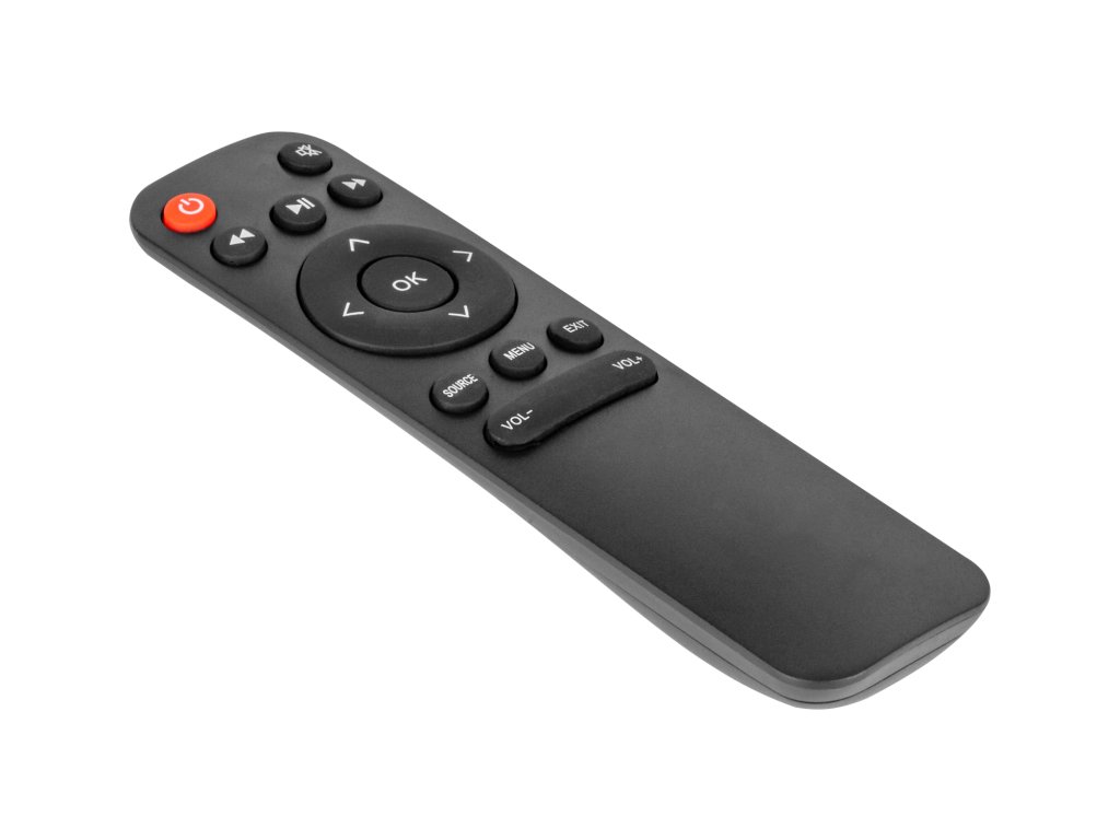 Domači projektor Kruger&Matz V-LED50 pomeni tudi udobje. Set vključuje daljinski upravljalnik, s katerim lahko na primer izberete vir predvajanja ali nastavite glasnost, ne da bi se morali vstati s kavča.
