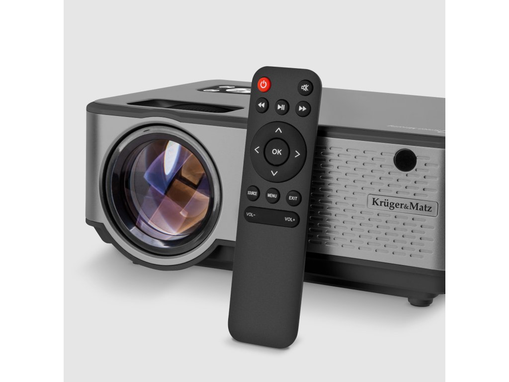 Projektor Kruger&Matz V-LED60 je tudi priročen za uporabo. Set vsebuje daljinski upravljalnik, s katerim lahko na primer izberete vir predvajanja ali prilagodite glasnost, ne da bi vstali s kavča.