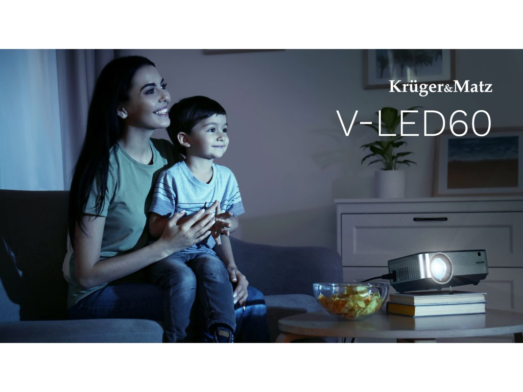 Odločate se, kateri projektor izbrati za vaš dom Ne pozabite preveriti LED projektorja Kruger&Matz V-LED60! Naprava predvaja materiale v full HD ločljivosti, zato je idealna za prikazovanje vaših priljubljenih programov in filmov.