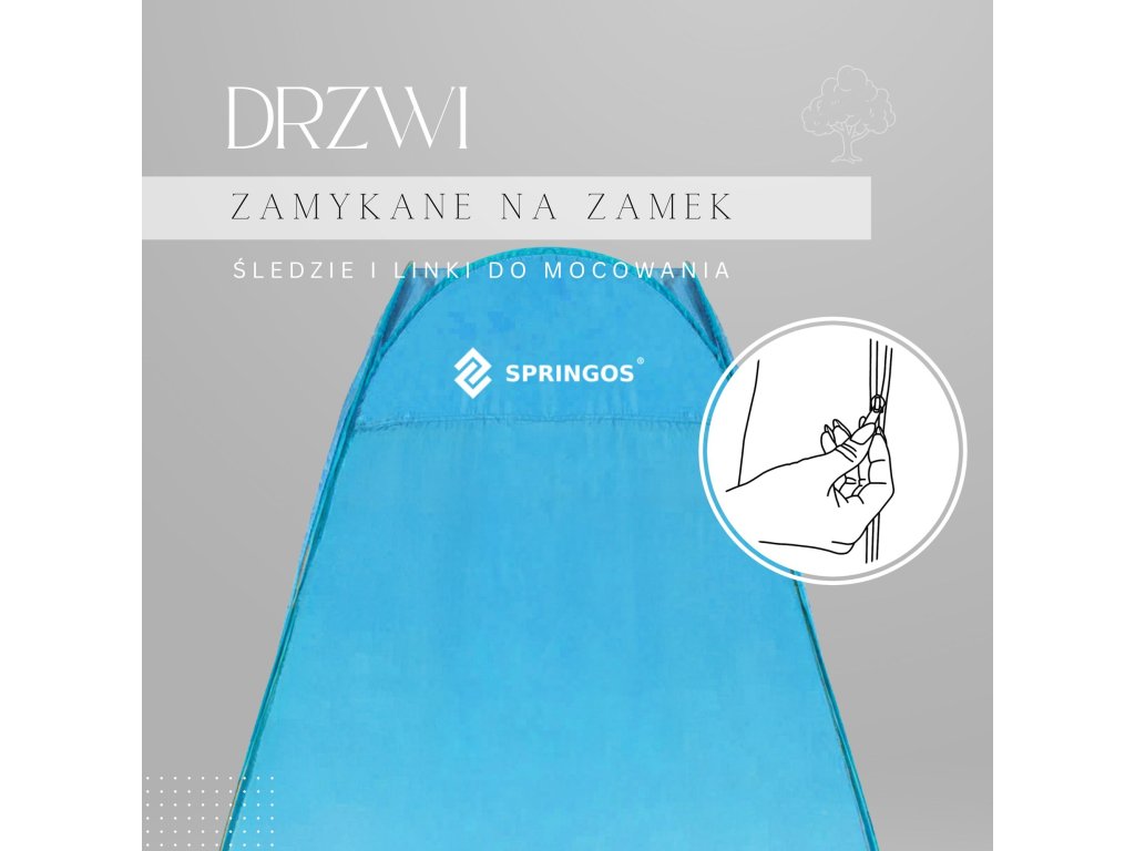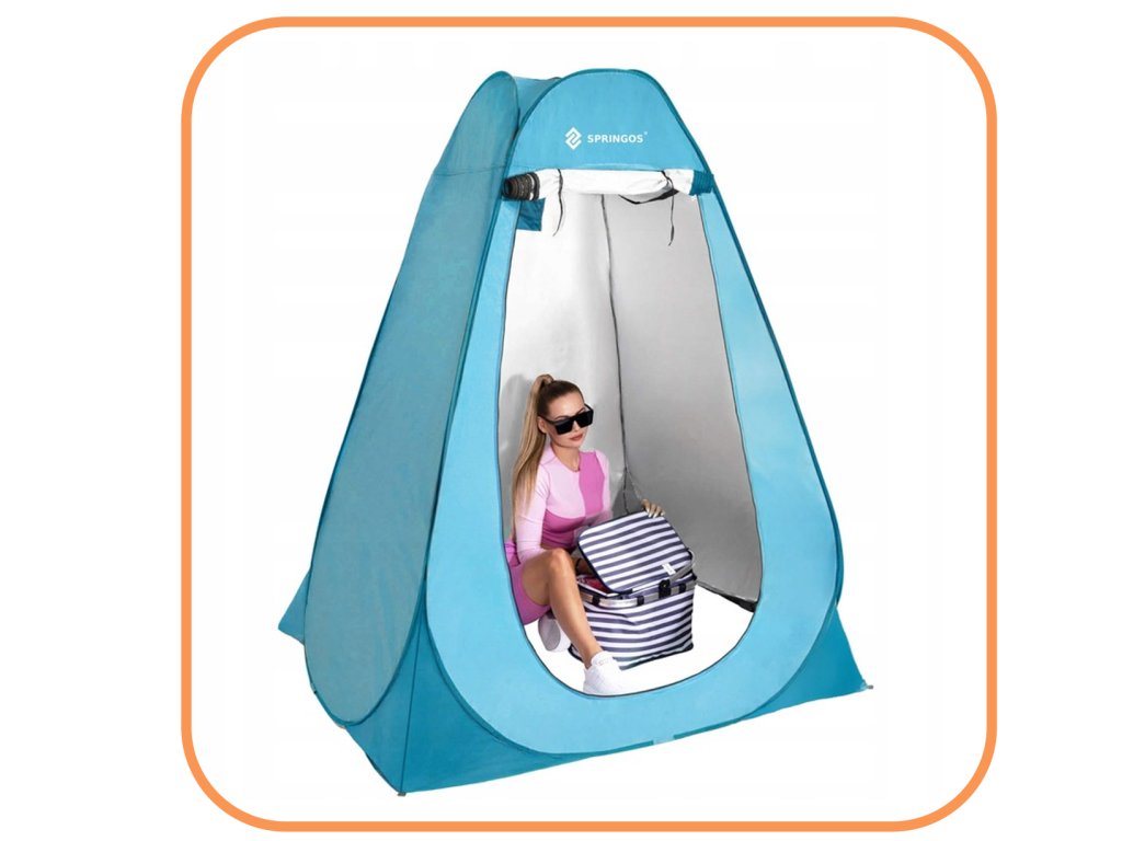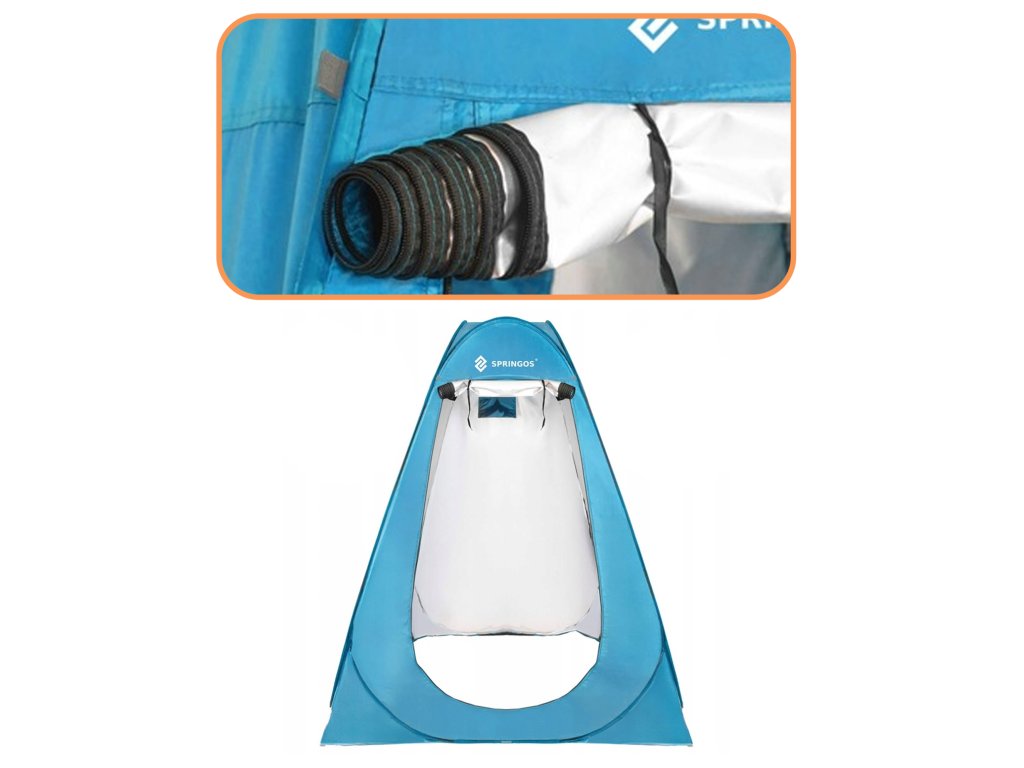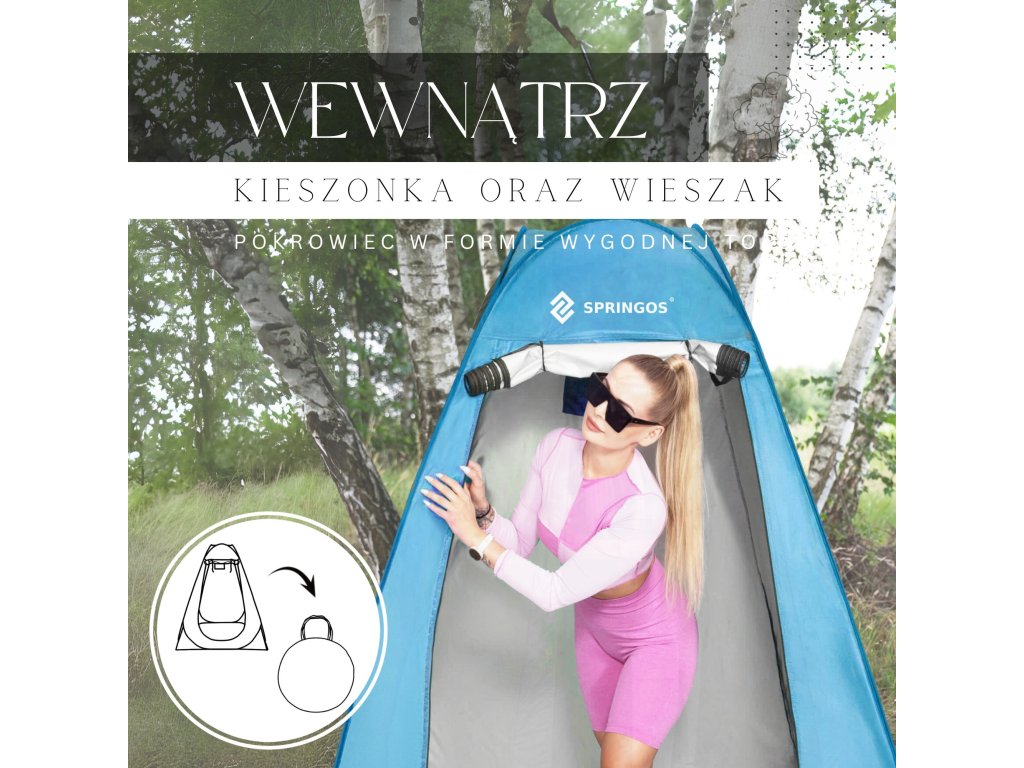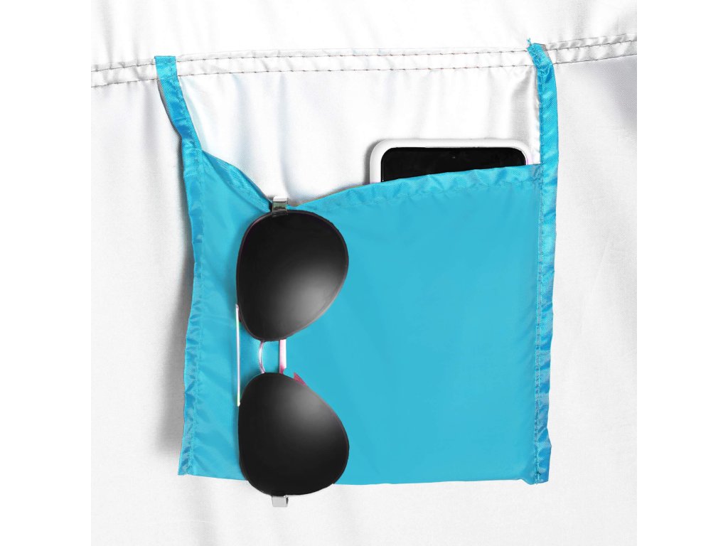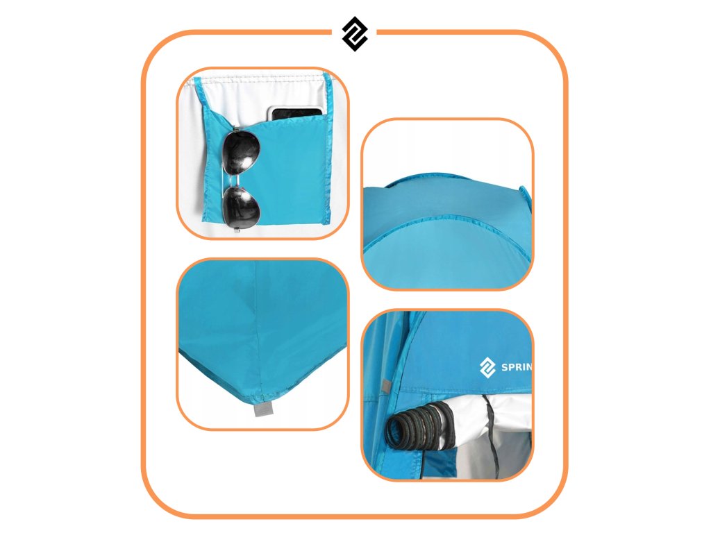 - Na vrhu na vsakem vogalu stene 4 nastavki preko katerih lahko napelješ vrvice in pritrdite kabino za preoblačenje, da bo stabilna in se ne bo majala na vetru